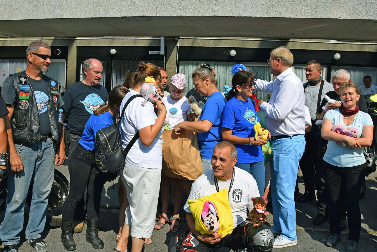 A Szelíd Motoros nevű szervezet tagjai vasparipákon dübörögtek a kórház területére és önzetlenül segítettek: zsákokban cipelték a rengeteg plüssfigurát, a készségfejlesztő és olvasókönyveket, valamint a babákat. A játékok itt mind-mind gazdára találtak a civil kezdeményezésnek köszönhetően.