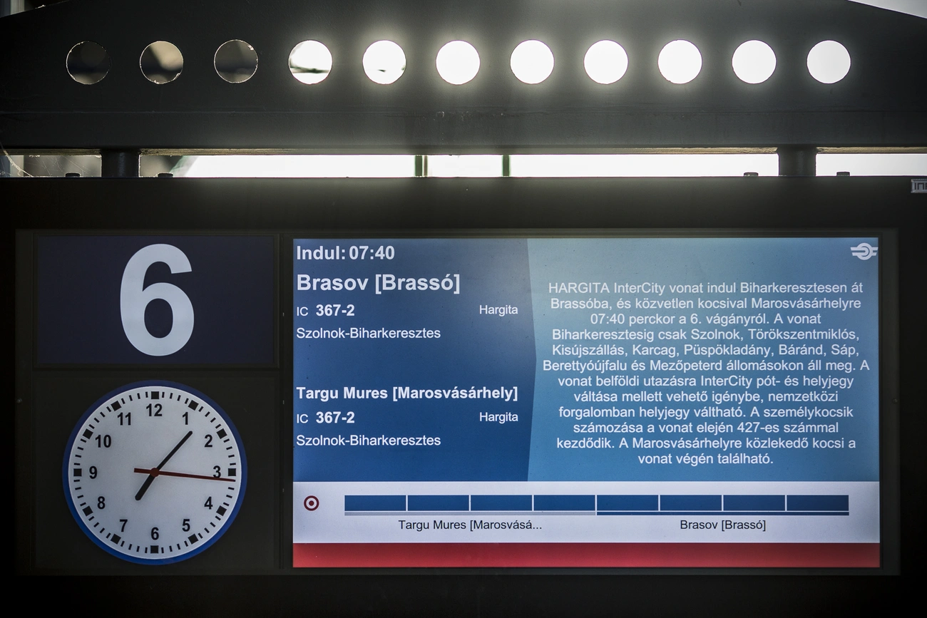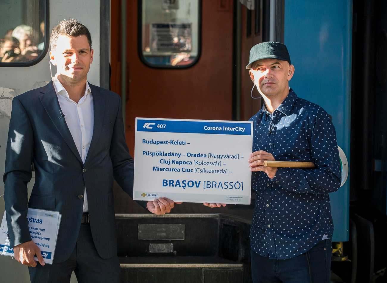 A Brassóba közlekedő Hargita IC az első olyan vonat, amelynek iránytábláján magyarul is szerepel a határon túli település elnevezése. A ma reggel útnak indult menetrend szerinti járatra Loppert Dániel a MÁV kommunikációs igazgatója és Vujity Tvrtko közösen helyezte el a magyar nyelvű feliratot is tartalmazó táblát.