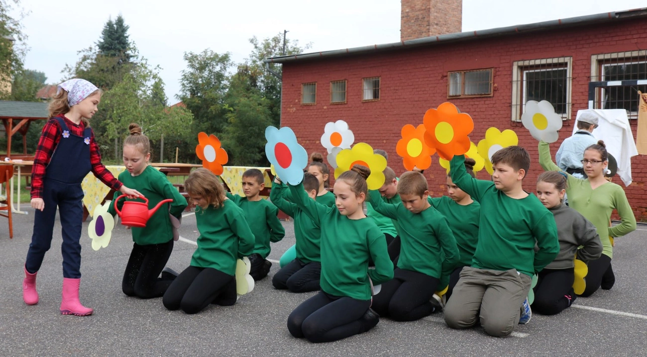 Kertészekké és növényekké váltak műsorukban a görömbölyi iskola tanulói. Minden gyerek zöld felsőben és sötét alsóban, a természet és a környezettudatosság jegyében vett részt a programokon. Aszfaltrajzverseny, kirakós játék és vetélkedők is színesítették a napjukat.