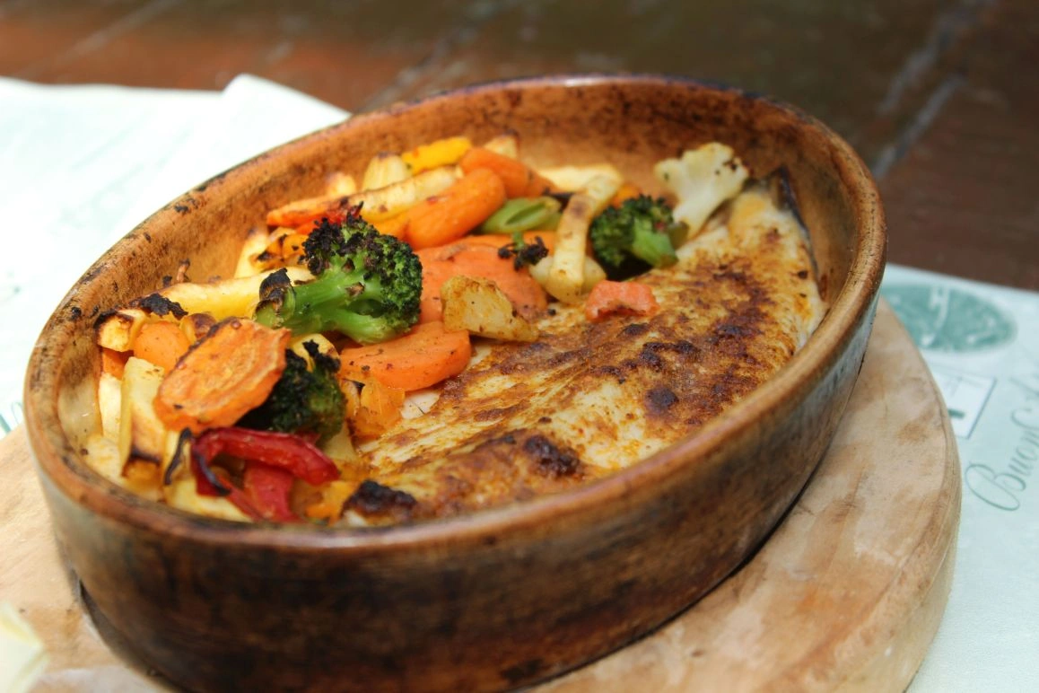 Napi ajánlat: Cseréptálban sült pisztrángfilé szárzellerrel, fűszeres sütőtökkel cseréptálban sütve