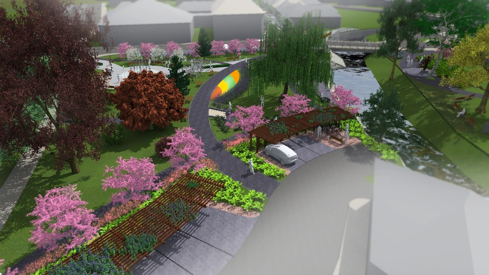 A II. János Pál pápa tér lépcsőzetes süllyesztést kap a Szinva-patak medre felé, mellyel a zöldterület közvetlen kapcsolatba kerül a vízfelülettel. A téren újonnan kialakított sétányok mentén kandeláberek, utcabútorok, színes évelőágyások és egyedi fák kapnak helyet, ezen felül kialakítanak egy látványos vízképpel működő, burkolatba süllyesztett nagyobb méretű szökőkutat is.