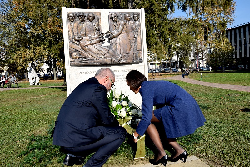 A megemlékezés virágaival az ’56-os emlékmű, valamint Tóth Ilona Emléktáblája előtt is tisztelegtek.