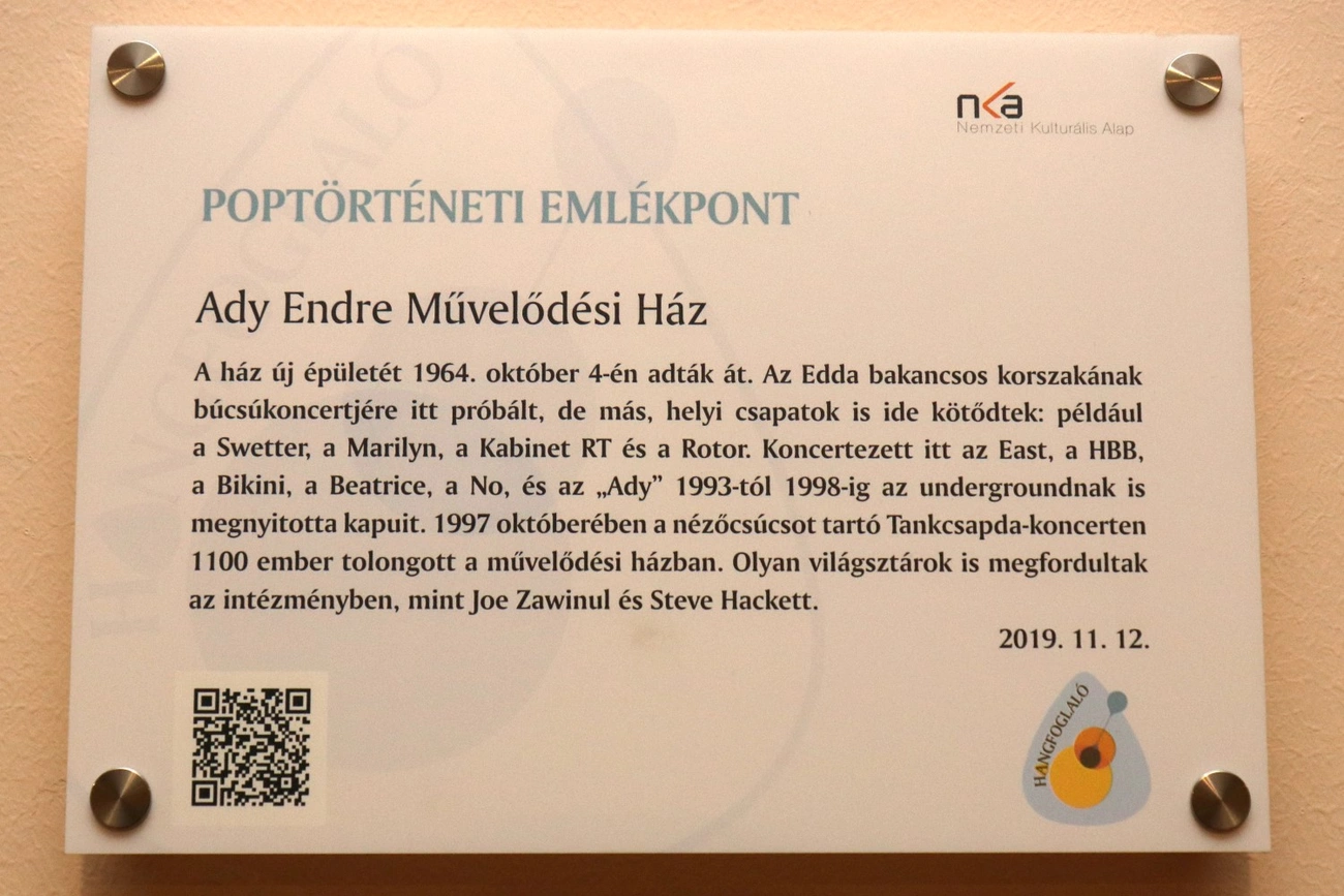 Az Ady művelődési ház lett a második hivatalos poptörténeti pont Miskolcon. Az ország több városában táblák emlékeztetnek arra, hogy a kulturális intézmények zenetörténeti jelentősége pótolhatatlan.