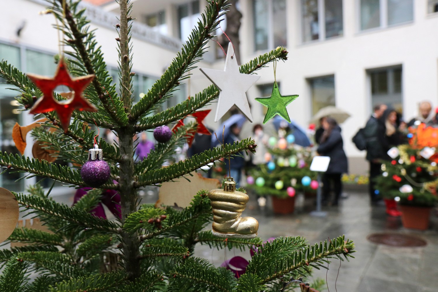 Mintegy harminc fenyőfa díszíti a Városháza udvarát, ami idén is Angyalkertté változott. Ezúttal is civil szervezetek állítottak saját karácsonyfát.