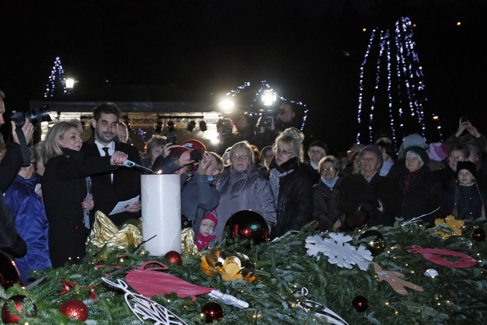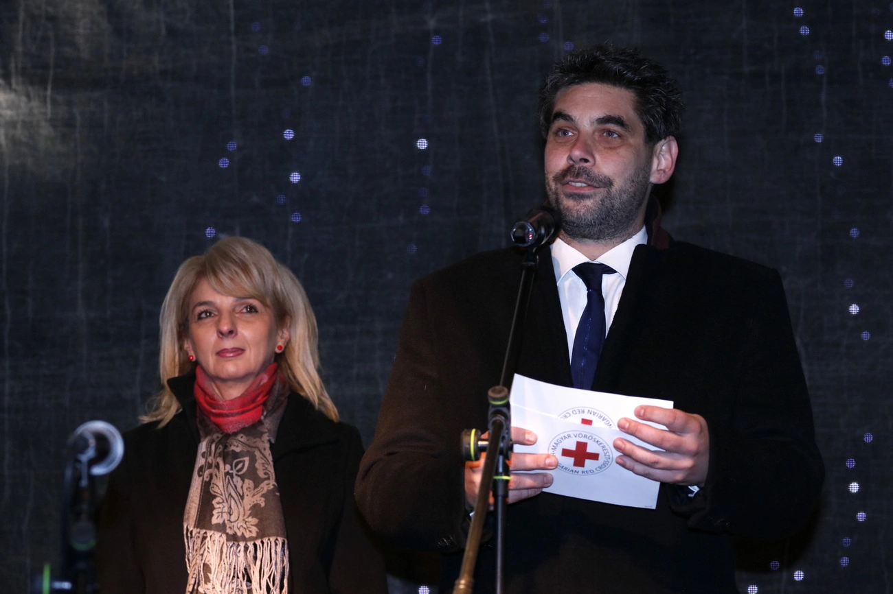 Grubert Roland, a Magyar Vöröskereszt Borsod-Abaúj-Zemplén Megyei Szervezetének igazgatója elmondta, a vasárnaponkénti gyertyagyújtás egy-egy figyelmeztető mérföldkő. – Itt az ideje magunkba nézni. Gyújtsuk meg az ünnepi gyertyákat, amikkel fény gyúl majd szívünkben is, a feltétel nélküli jó szándékot tegyük életünk részévé. A Vöröskeresztnél nap mint nap a legnehezebb emberi sorsokkal találkozunk. Mi azt a csatornát biztosítjuk, amin keresztül az önzetlen segítség és a támogatás eljut a rászorulókhoz. Ezekre nemcsak advent idején, hanem az év minden napján nagy szükség van. A szeretet nem veszett ki a világból és így a miskolciakból sem. Sokan és sokat segítenek, ami azt jelenti, hogy Miskolc és a megye települései képesek egy közösségként törődést és együttérzést mutatni a nehezebb sorsú tagjaik iránt – mondta Grubert Roland, aki arra kérte hallgatóságát, ebben a pár napban figyeljenek oda jobban a környezetükben élőkre. – Az idősekre, a magányosokra, az ünnepeiket a szeretteiktől távol töltőkre. Legyen egy pár jó szavuk és mosolyuk az utcán élőkhöz is! Legyen gondunk arra, hogy közösen minél több örömet tudjunk adni másoknak – hangsúlyozta az igazgató, aki Duberné Dunaveczki Évát, a Magyar Vöröskereszt miskolci Hajléktalanokat Gondozó Központjának intézményvezetőjével közösen gyújtotta meg az első gyertyát az adventi koszorún.