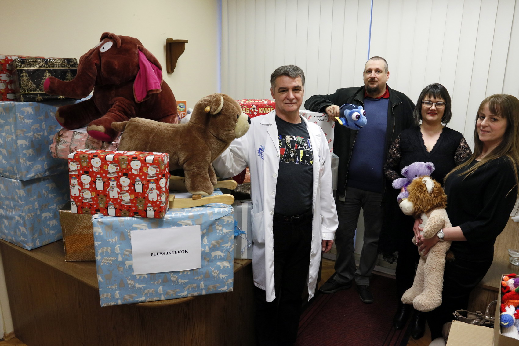 Két kisebb irodahelyiséget töltöttek meg a játékok, amiket a Magyar Kormánytisztviselői Kar tagjai adományoztak a Gyermeksebészeti Traumatológiai és Égési Osztályon fekvő kis betegek. Az adományokat elsősorban nekik gyűjtötték, de annyi ajándék érkezett, hogy az összes osztályon örömet szereznek majd a játékok.