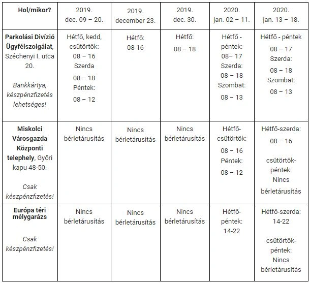 2020. január 20-ig érvényes a kedvezményes lakossági bérlet, amely lakcímhez váltható, illetve az intézményi bérlet, amely a bölcsődékhez, óvodákhoz, általános- vagy középiskolákhoz legközelebb eső parkolókban használható,