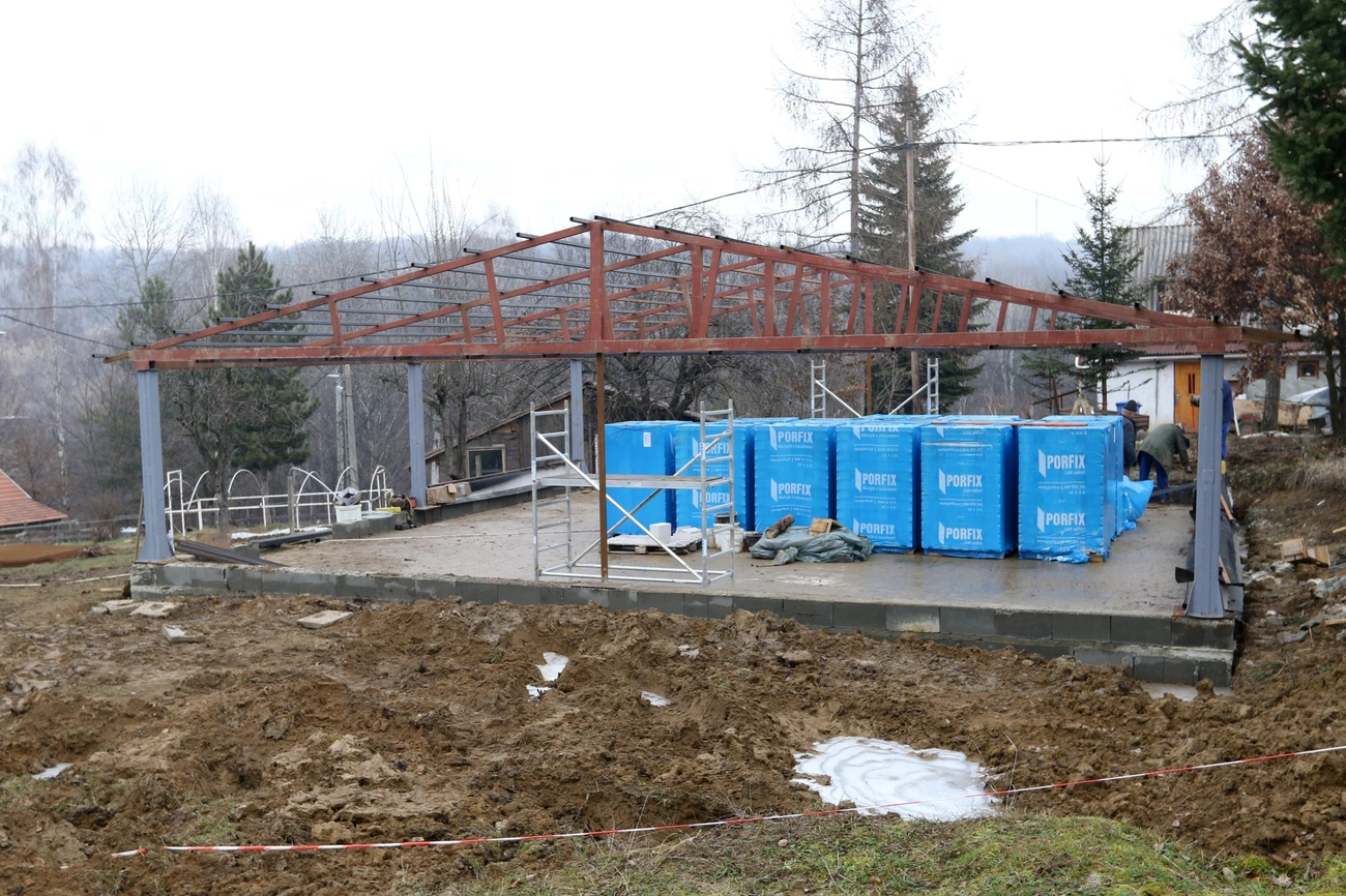 Az építkezés is gőzerővel tart, a majorságban már áll az istálló vázszerkezete. Az alapítványi elnök sorolja: ahhoz, hogy a kerítés biztonságos legyen, 400 ezer forintért vásároltak vasat, a hegesztett háló 115 ezer forint volt, és betonoszlopokat is beszereztek. A kerítés körülbelül fél millió forintba fog kerülni, téglát 1 millióért rendeltek az új istállóhoz, a tetőszerkezet pedig további 400 ezer forintot emészt fel. Az alpakákat dupla kerítéssel védik majd.