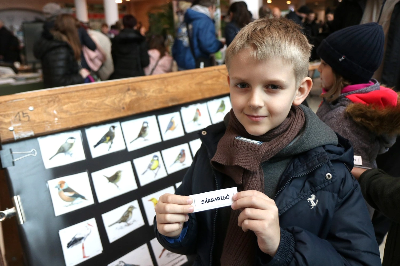 - Ez az őszapó, ez egy gömbölyű és hosszúfarkú madár, a kakukk teljesen szürke, az ő hangját már halottam is, a búbos pacsirtát már láttam egy könyvben, a nagy fakopáncs pedig fekete-fehér-piros – mondja Nagy Chernel Konrád, aki épp összepárosítja a madárneveket a képekkel, ugyanis ez is egy játékos feladvány a programban, elsősorban gyerekeknek, de a felnőttek is sokat tanulhatnak belőle. Konrád szerint gondoskodással lehet védeni az állatokat, és a madarak téli etetése is nagyon fontos.