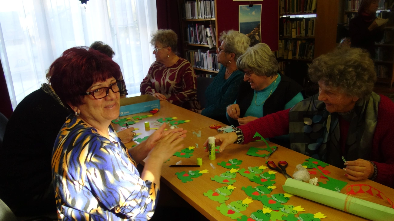 A Tompa Mihály Könyvtárban tartott rendezvényen többen zöld színű szíves és nyakkendős kartonbékát készítettek, néhányan pedig ugróbékát hajtogattak papírból a fesztivál február 14-i látványos felvonulására.