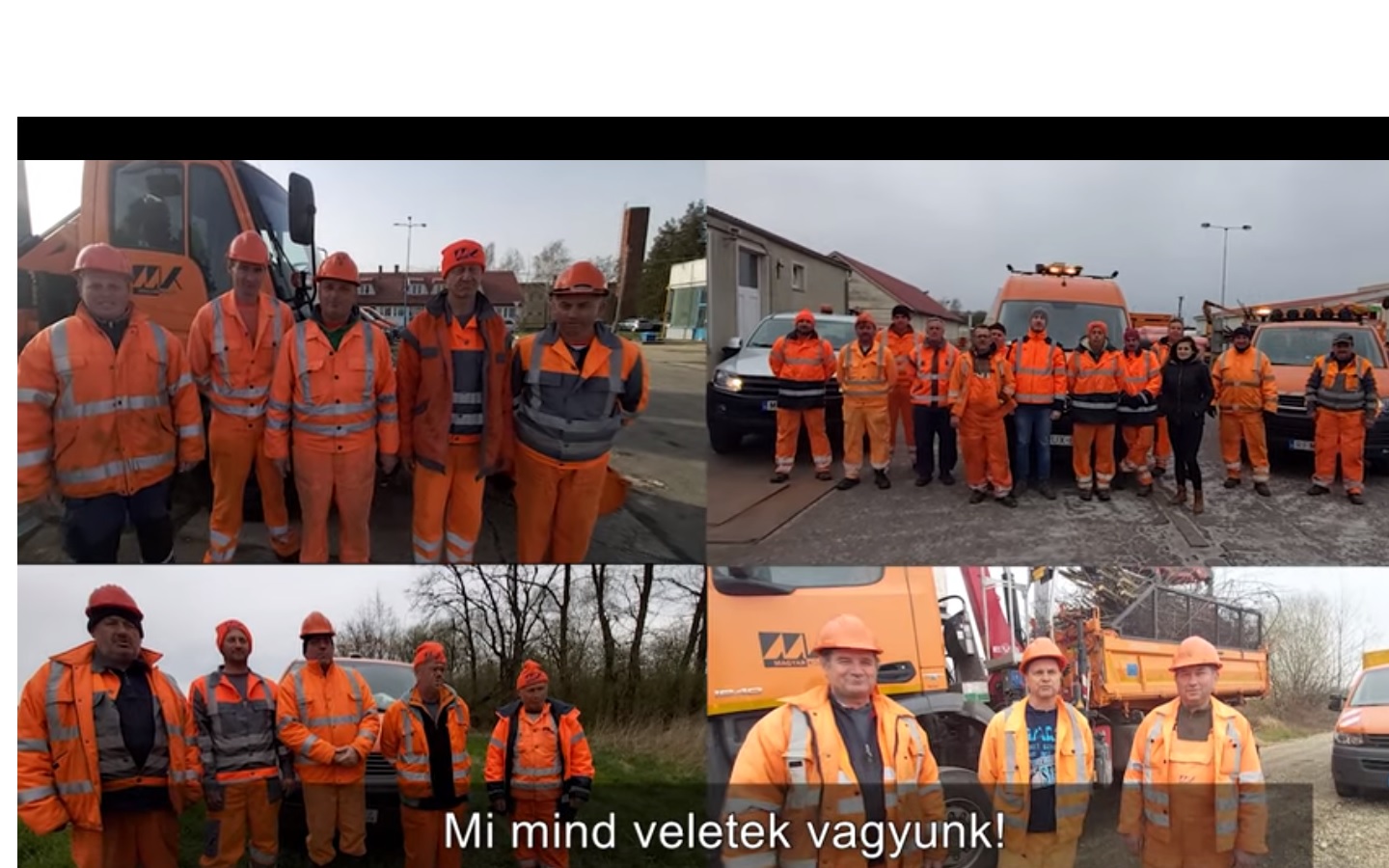 Megható videót tett közzé hétfőn délelőtt youtube-csatornáján a Magyar Közút Nonprofit Zrt. A felvételen az állami nagyvállalat dolgozói üzennek az egészségügyi dolgozóknak, mentőknek, rendőröknek, hatósági szakembereknek és önkénteseknek: veletek vagyunk.