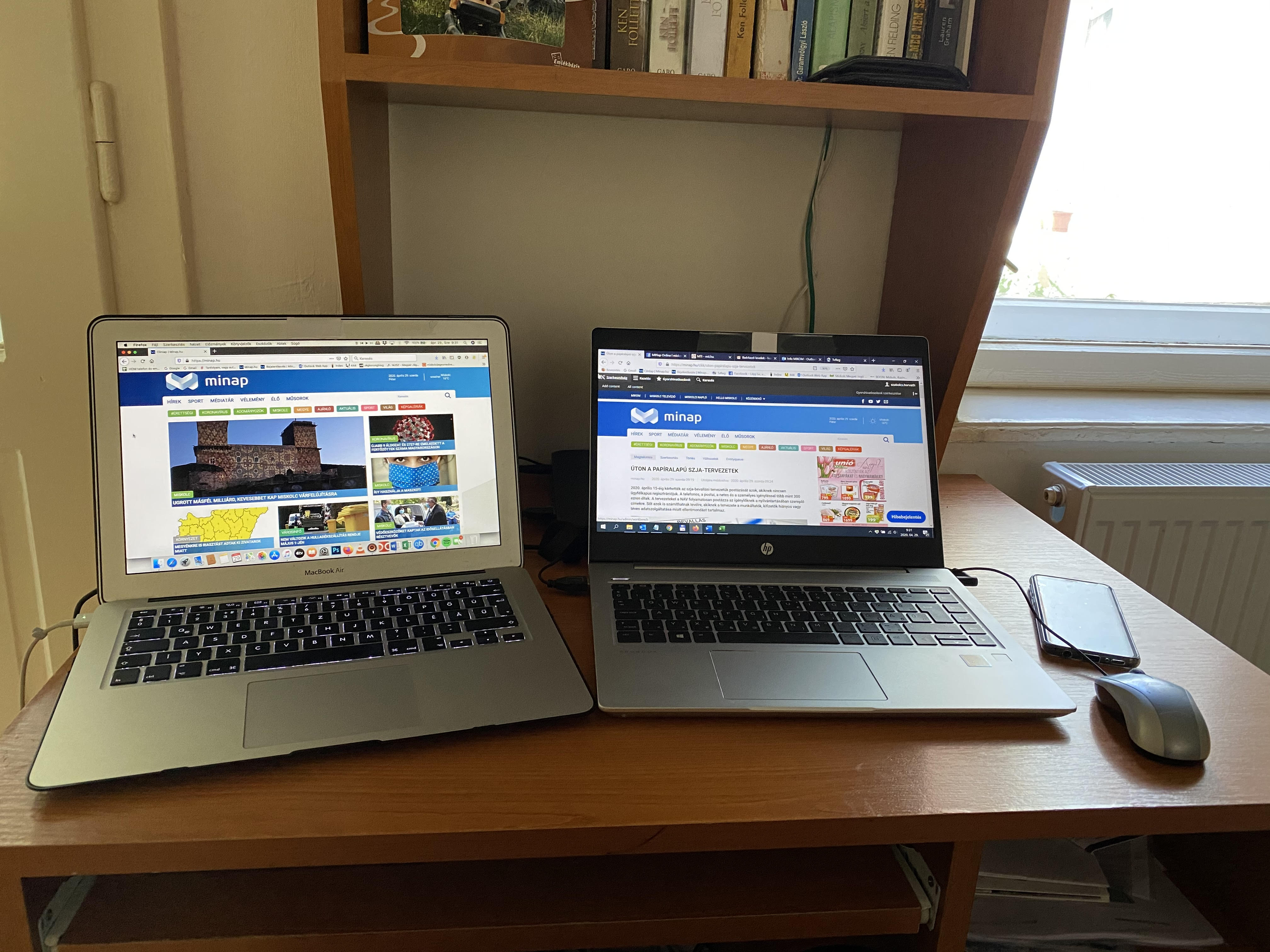 Otthonról, úgynevezett home office-ból készül március 17-e óta a minap.hu-ra kikerülő minden tartalom és a napi ügyeletes szerkesztő is otthonából frissíti a portált (hasonlóan egyébként lényegében az összes hazai hírportálhoz). Kivételt talán azok az újságírók képeztek, akik a fontosabb eseményekről ilyenkor is helyszíni tudósítást adtak, illetve fotóriportereink, akik koronavírussal, maszkkal és gumikesztyűvel megküzdve, folyamatosan a Miskolc TV-s kollégákkal mozogtak, hogy fotóink azért mindenhonnan legyenek.