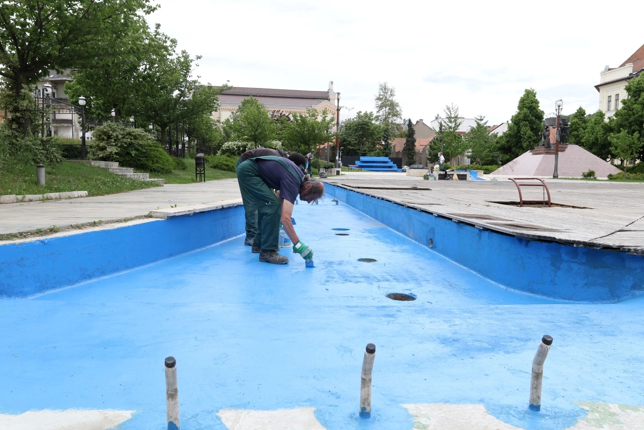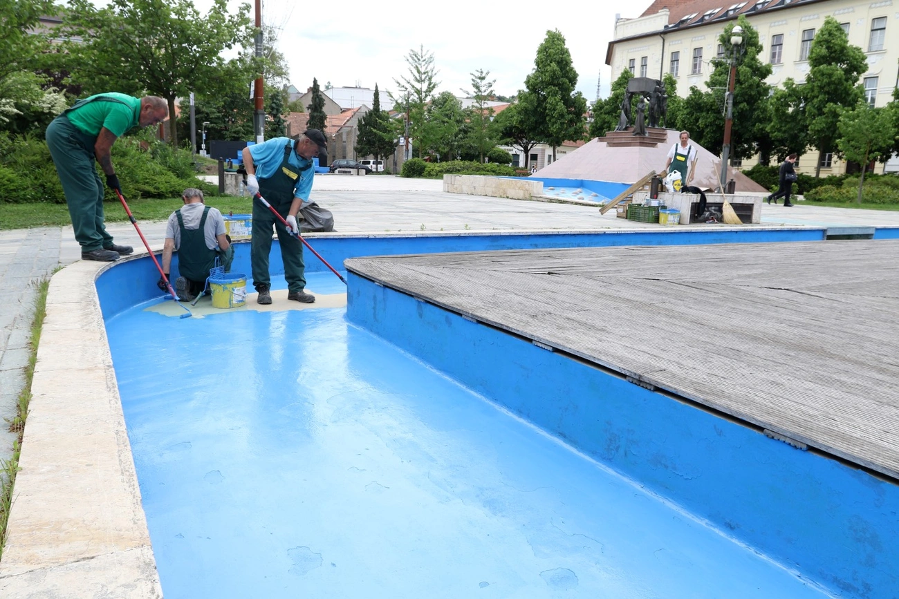 Hosszú éveket követően tisztasági festést kaptak a Hősök terén található szökőkutak medencéi. A létesítményeket utoljára tizennégy évvel ezelőtt, az akkor megújult tér kialakításakor festették le, a medencék így mostanra megértek az újrafestésre.