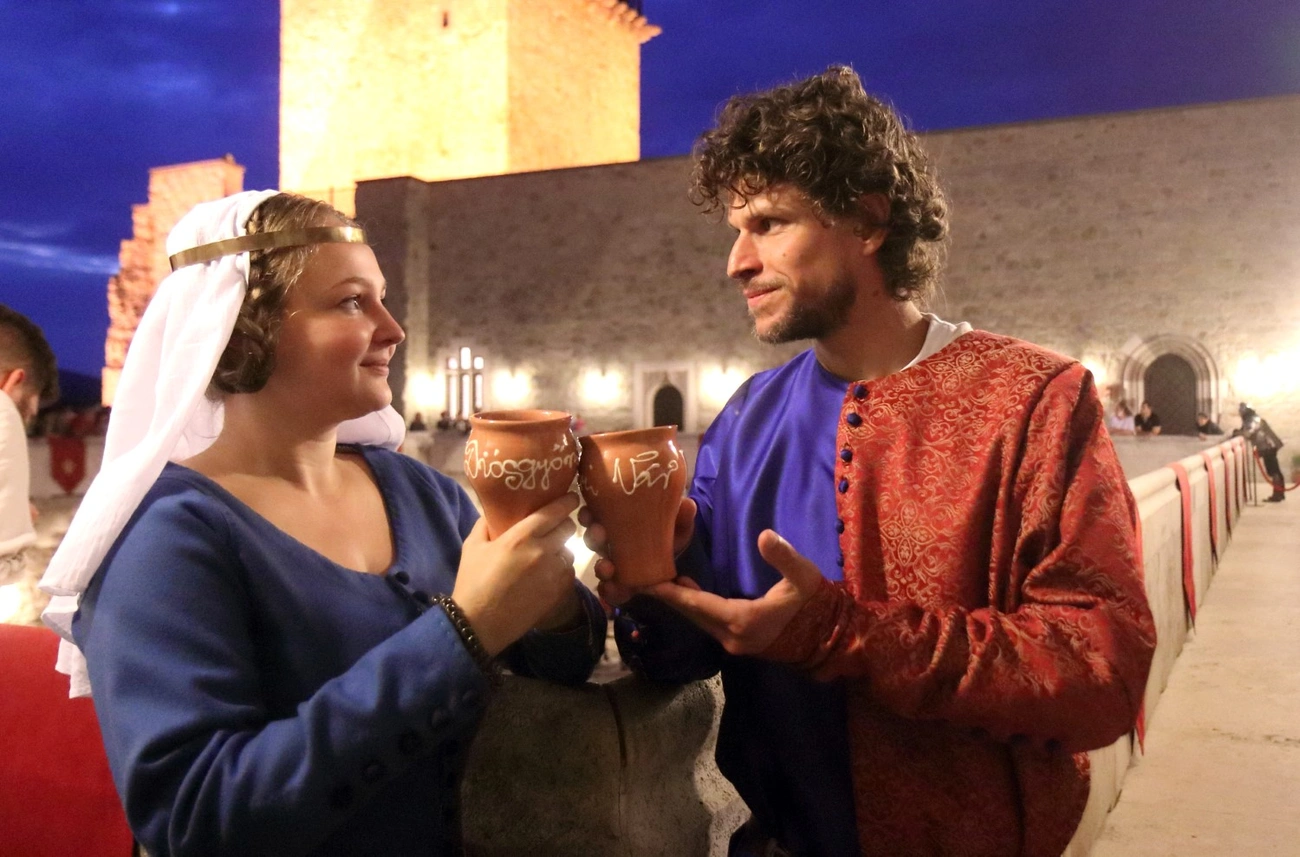 A lovagkirály, Nagy Lajos, rangos királyi házakból kaphatott volna feleséget, ő azonban beleszeretett a bosnyák bánnak a budai udvarban nevelkedő, világszép leányába, a 14 éves Erzsébetbe. Hitvese iránti szeretete akkor sem múlott, amikor 17 évig hiába várták a gyermekáldást, és a válásnak egyetlen lehetséges módját fontolgatták: a feleség kolostorba vonul, így a férj szabaddá válva új házasságot köthet. A dalmát tengerparton időzve azonban - ahogy a korabeli olasz krónikás írja - győzött a királynak a hölgy iránti szeretete és megtörtént a csoda: a királyné áldott állapotba került, majd néhány éven belül három leányt szült: Katalint, Máriát és Hedviget. Ezt a magával ragadó szerelmi történetet a várnép előadásában láthatta a közönség.