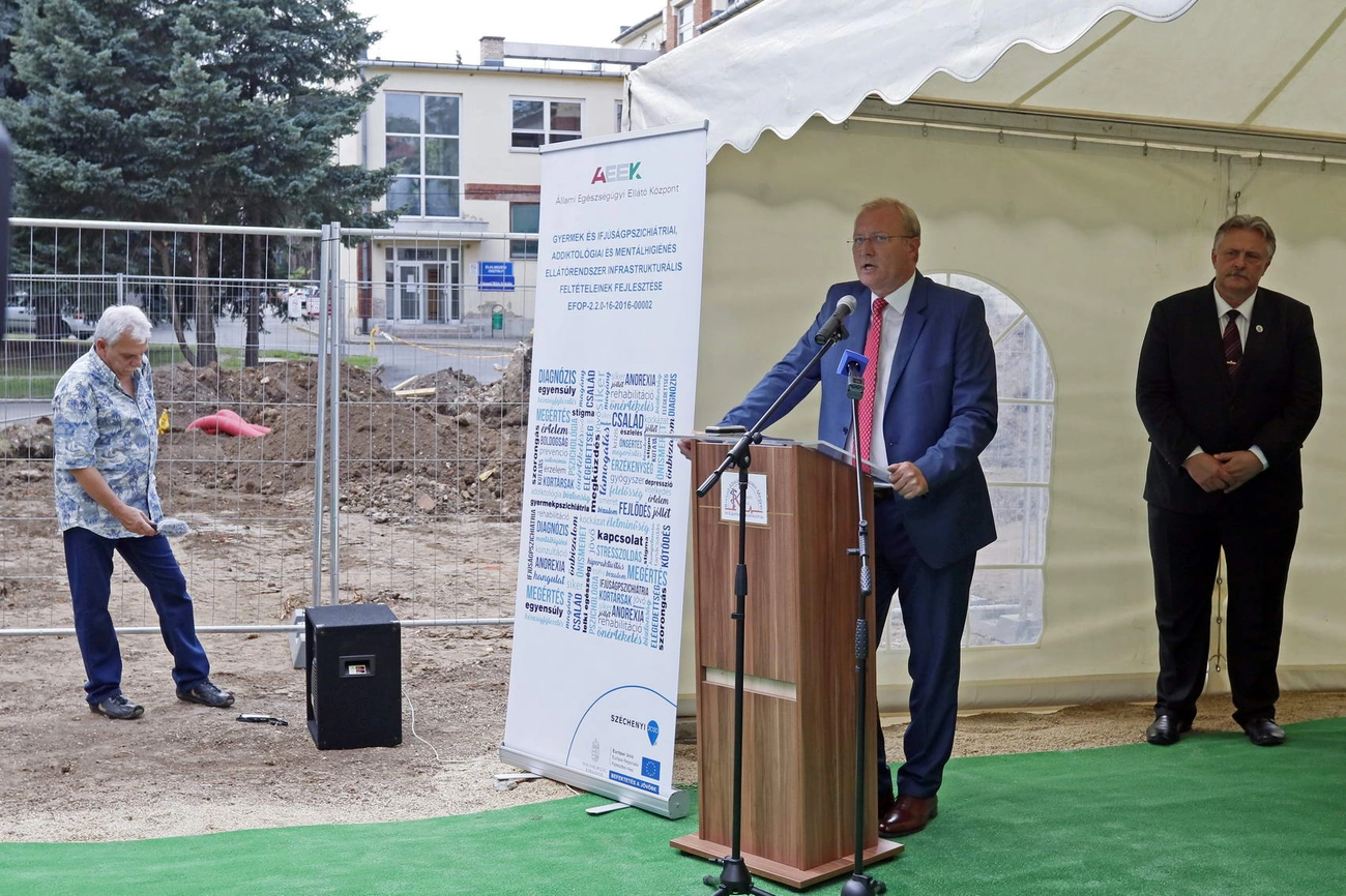 Az Állami Egészségügyi Ellátó Központ (ÁEEK) vezeti a beruházásért felelős konzorciumot, és egyetemek partnerei még a kórháznak. Az elsődleges cél a 18 év alattiak mentális egészségi állapotának javítása és a mentálhigiénés ellátórendszer fejlesztése. Azonban az ÁEEK főigazgatója is felhívta a családi kötelékek és az iskola fontosságára a figyelmet. Gondos Miklós kitért arra is, hogy számos beruházás tart jelenleg is a magyar egészségügyben: fejlesztik az egynapos sebészeteket, vagy például 14 ezer orvostechnikai eszközt szállítanak ki a kórházakba.