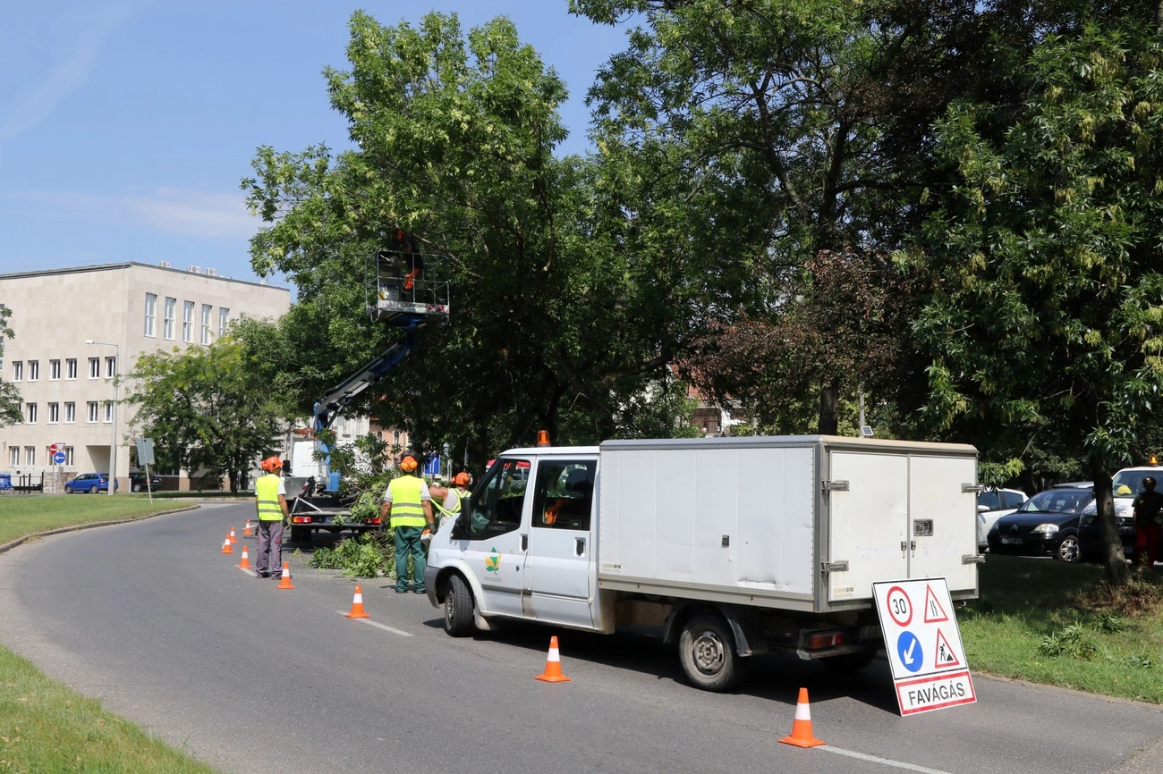- Két útellenőr kollegánk folyamatosan járja a várost, az ő jelzéseik és az előre elkészített ütemterv alapján haladunk – tájékoztatott Kertész Béla, a cég műszaki vezetője, aki elmondta azt is, hogy a múlt héten az Uitz Béla utcán, a Kálvin János utcán és a Városház téren távolították el a kilógó ágakat, míg szerdától a Szent Anna-templom és Feső-Majláth között folytatódik a munka. Minden olyan gallyat levágtak, ami behajlik az útszelvénybe, származzon útszéli fáról, vagy a villamosszigetek bokrairól. A letermelt növényrészeket teherautóval szállítják a városgazda Nádasréti telephelyére.