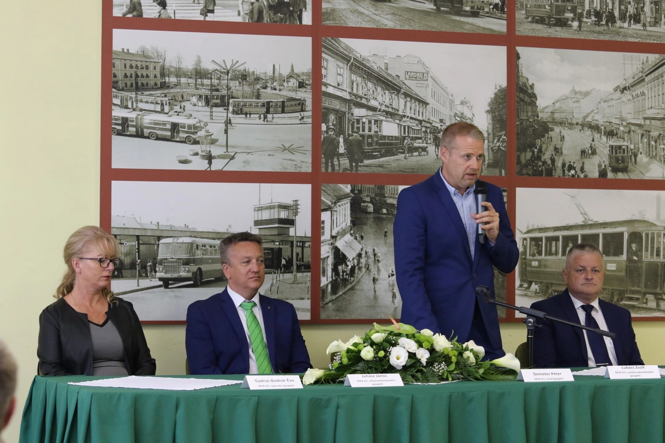 Az eseményen Demeter Péter, a közlekedési vállalat vezérigazgatója köszöntötte a megjelenteket, aki emlékeztetett, idén már 123 éves a miskolci tömegközlekedés, melyre az ünnepség mellett júliusban nosztalgiajáratokkal is emlékeztek. A cégvezető beszélt az elmúlt időszakban történt változásokról, a vállalatvezetés céljairól, terveiről is.