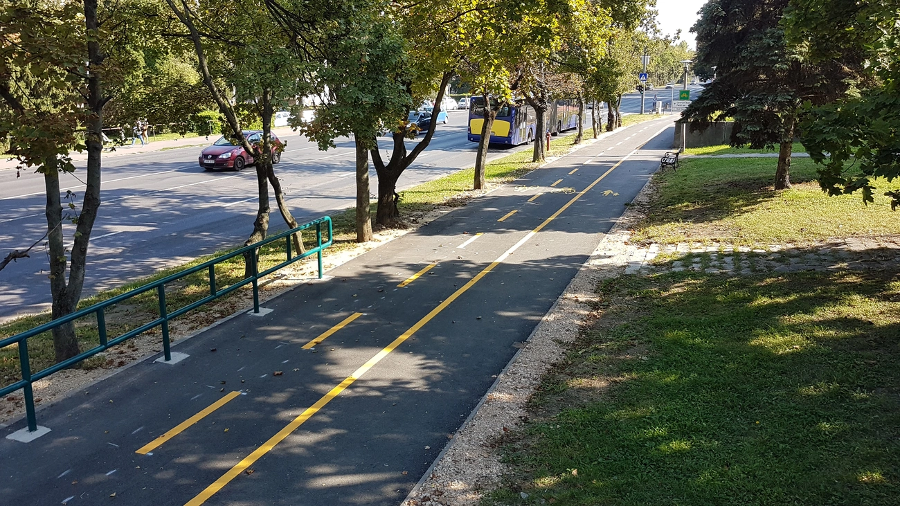 A kerékpáros-nyom kialakítása és az ezekhez kapcsolódó fejlesztések még 2018-ban kezdődtek a Bacsinszky utca – Bogáncs utca, az Erzsébet királyné útja – Harsányi út, illetve a Lavotta utca – Déli utca közötti részen, valamint a Repülőtéri út egyes szakaszain. Majd 2020. márciusban folytatódott a projekt a Katalin utcát és a Mechatronikai Ipari Parkot összekötő új kerékpárút építésével. Az új szakasz kerékpáros-nyom felfestésével, részben forgalomtól elválasztott új gyalog- és kerékpárút építésével valósult meg.