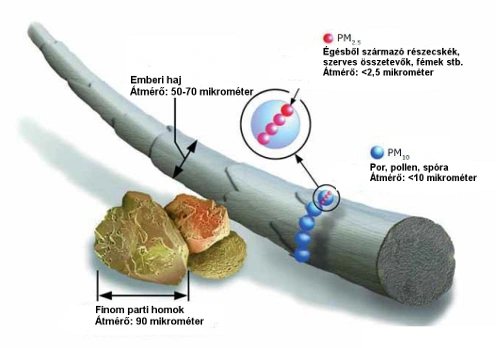 A szilárd részecskék felelősek lehetnek az enyhe légúti elváltozásoktól kezdve az allergiás megbetegedéseken keresztül a súlyos légzőszervi, szív- és érrendszeri megbetegedésekért is. Magasabb PM10 szennyezettség esetén (100 μg/m 3 felett) legalább 6 %-kal nő meg az összes és 9 %-kal a szív- és érrendszeri betegségek miatti halálozás. Nagyon fontos tehát, hogy megelőzzük az egészségügyi határérték feletti koncentráció kialakulását.