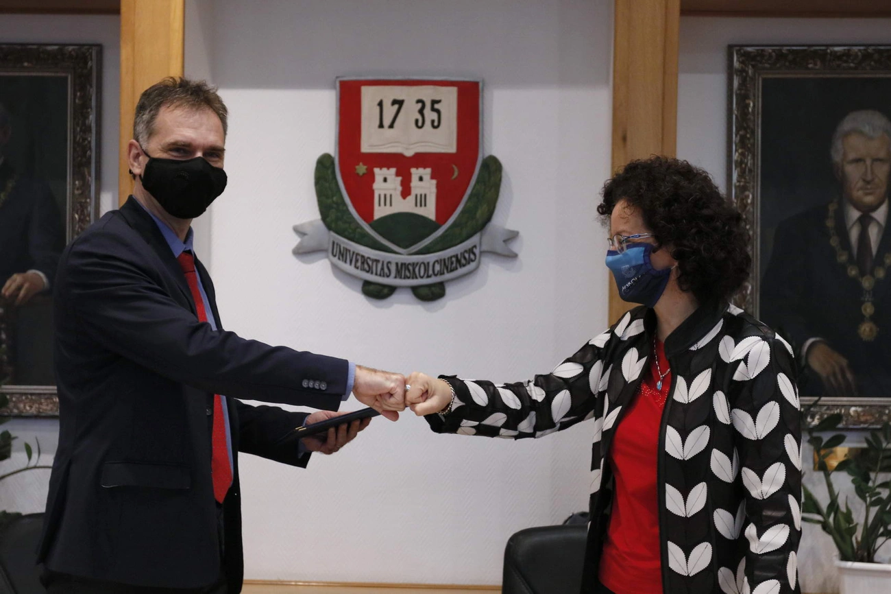 Horváth Zita rektor fogadta az Eötvös Loránd Kutatási Hálózat Energiatudományi Kutatóközpontjának főigazgatóját, Horváth Ákost, hogy aláírjanak egy együttműködési megállapodást. – Az utóbbi időben számos stratégiai jellegű együttműködést kötöttünk, amik erősítenek bennünket. Egyrészt a gazdasági élet szereplőivel hoztunk létre hasonló szerződést, ami a duális képzésünkre és a kutatásfejlesztésre irányul, másrészt tudományos intézményekkel.