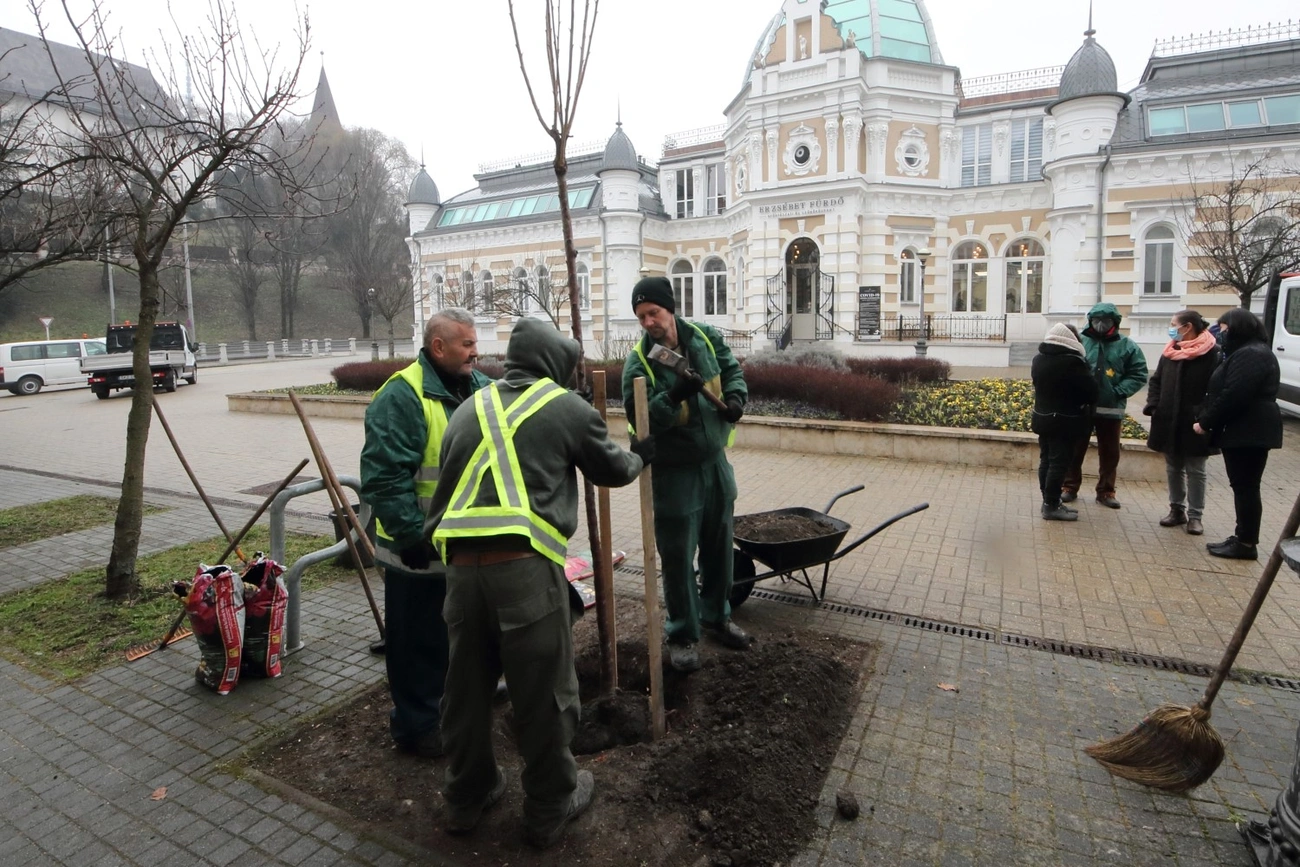 – Én üzemeltetem a téren található gyógyászati fürdőt, különösen tavasszal gyönyörködhetünk az itt található cseresznyefákban – fogalmazott, köszönetet mondva egyúttal a Városgazdának, hogy vállalták az ültetést.