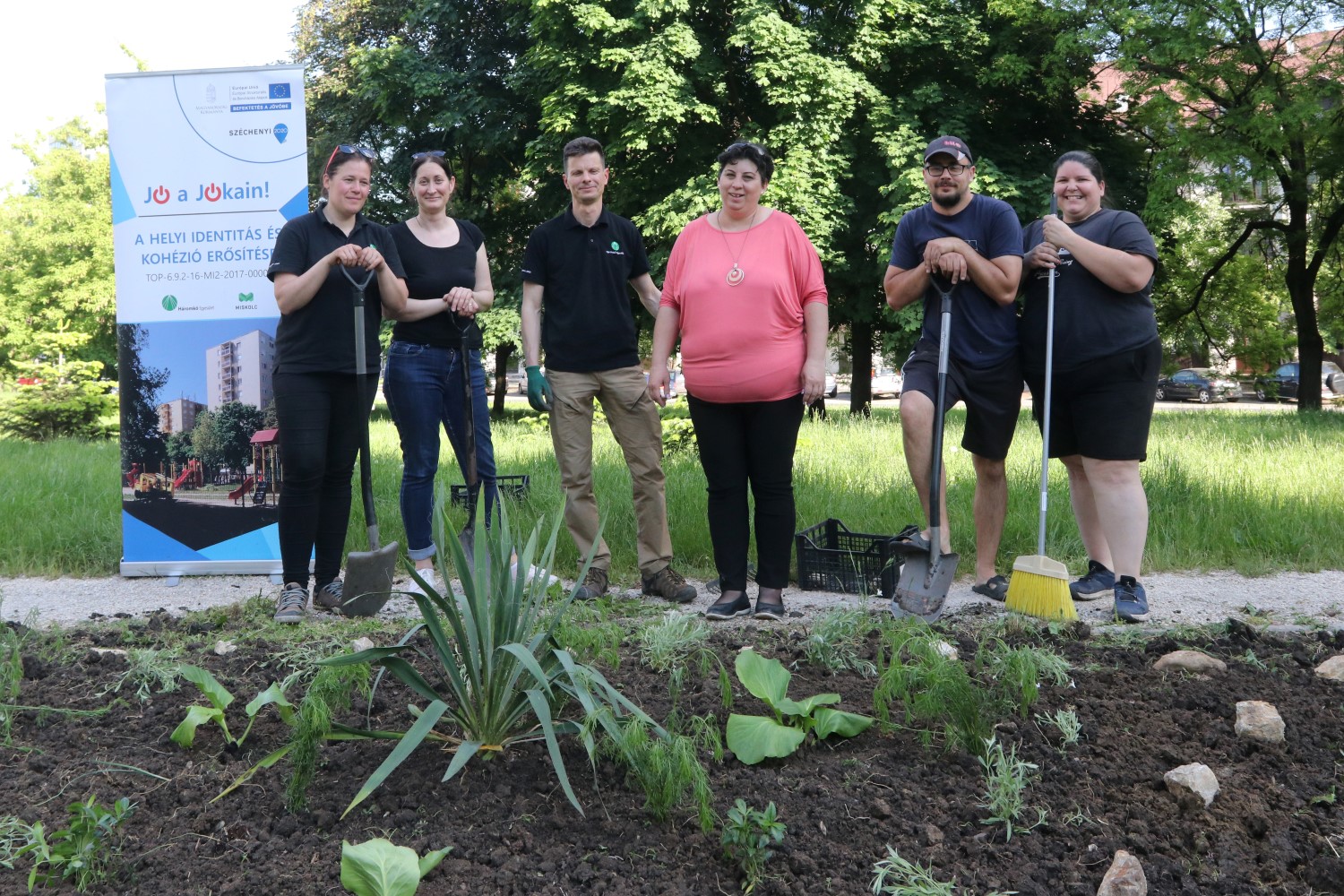 A Háromkő Egyesület a Jókai utca 17. szám előtt a kavicsos út mellett, a szalonnasütőnél található kiskertet tette rendbe.