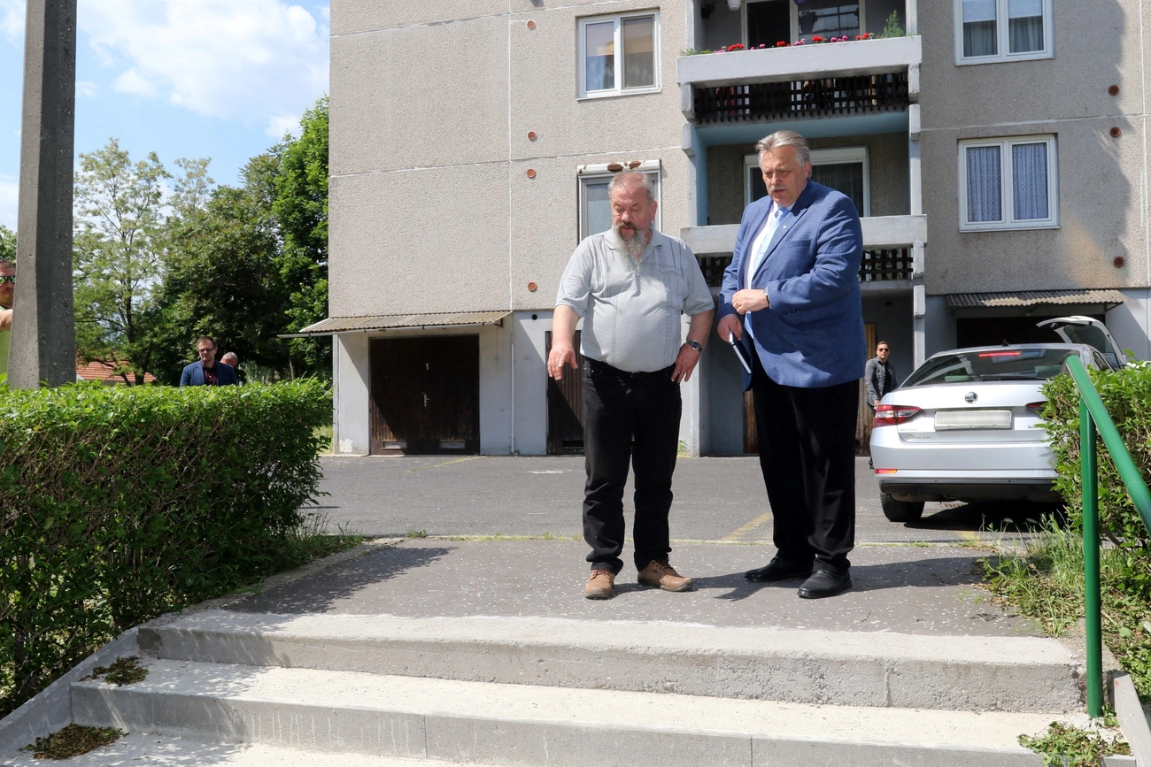 - A Pattantyús utcán egy, a közelmúltban elkészült lépcső és járdafelújítást mutattam meg, ami nem véletlen, a lépcsők, járdák felújítására ugyanis sürgető a városrészben. A lakóépületek felépítése óta eltelt harmincöt-negyven évben a fák szépen megnőttek, ezzel együtt viszont a járdák, lépcsők elhasználódtak, a felújításukra és a korlátok pótlására a 2019-es önkormányzati választási kampányban ígéretet is tettem. Ez a munka tavaly el is kezdődött, és idén tavasszal is több területen folytatódott – mondta Fodor Zoltán önkormányzati képviselő.