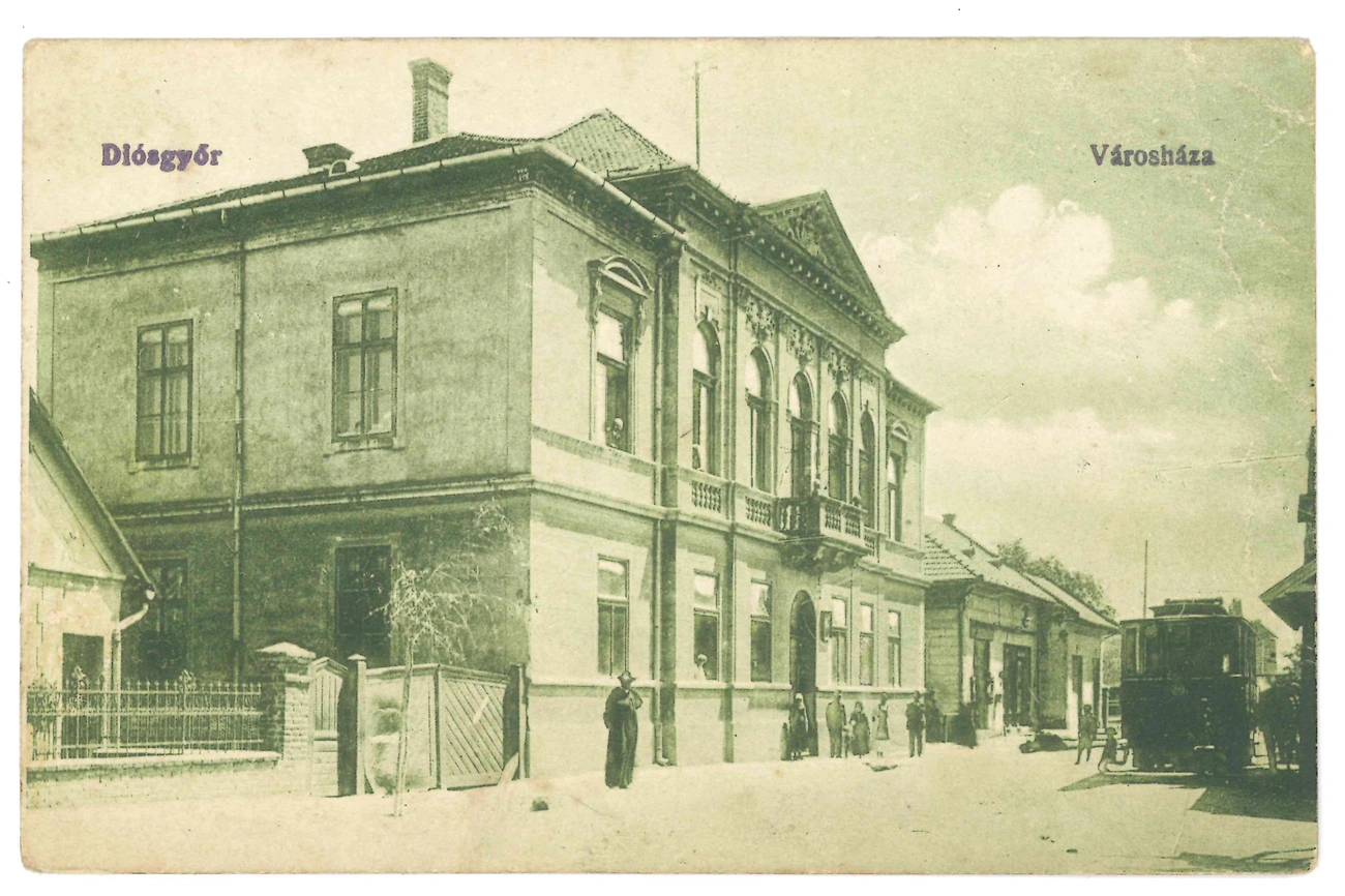 A kép felirata szerinti Árpád utca a település építészeti arculatváltása során Blaha Lujza, majd 1993–1994-től Nagy Lajos király útja lett. A kép 1906 után készült, amire a villamossínen kívül a Miskolc-Diósgyőr „közúti villamos helyiérdekű vasút” végállomásaként szolgáló, fából készült beálló is utal. 1994-ig a Táncsics térről idáig közlekedett a villamos, ekkortól került át az „új” Árpád utcai vonalra. (A villamos 1964-től megkerülte a városházát, s ez szűnt meg az Újdiósgyőr – Diósgyőr közötti kettős vágányú villamosközlekedéssel.)