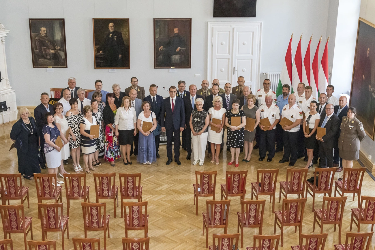 Az ünnepségen negyven szakember és szervezet munkáját díjazták elismerő oklevelekkel a koronavírus-világjárvány elleni védekezésben nyújtott kiemelkedő teljesítményükért. Az egészségügyi és szociális dolgozók nem csupán tudásuk legjavát mutatták fel a járvány idején, hanem támaszt nyújtottak lelkileg is a betegeknek. Sokan új területeken bizonyították rátermettségüket: Covid-osztályokon, háziorvosi rendelőkben az oltási kampányban vagy oltóbuszokon. A mentőszolgálat munkatársai a frontvonalban szállították a betegeket és végezték a teszteléseket. A honvédség is rávilágított, milyen sokféleképpen tudja szolgálni a magyar embereket, legyen az járvány vagy bármilyen nemzetünket veszélyeztető erő. A katasztrófavédelem munkatársai is megmutatták, milyen fontos összehangoltan, időben cselekedni.