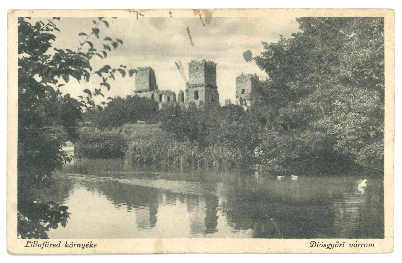 A Diósgyőri vár falai a Szinva patak völgyéből kiemelkedő szikladombra épültek. Már a 12. században állhatott itt vár; a mai, gótikus vár a tatárjárás után épült, fénykorát Nagy Lajos uralkodása alatt élte. Később a magyar királynék jegyajándéka volt, egészen a török időkig. A 17. század végére már lakhatatlanná vált, állapota egyre jobban leromlott. 1962-ben Czeglédy Ilona régész vezetésével kezdődött a vár feltárása, amelynek eredményeként romállapotában konzerválták. Újjáépítése 2013-ban kezdődött, az első ütemet 2014-ben adták át, a második pedig év elején indult. A régi képeslapon látható az egykori halastó is, ennek helyét az 50-es években feltöltötték, és a mélyén fakadó forrásokat bekötötték Miskolc vízellátásába. A tó emlékét jelenleg a Tavi-forrás vízmű és a Tópart utca neve őrzi. Ezen a területen helyezkedik el a miskolci WOW park - vagy ahogy a miskolciak emlegetik, a Tündérkert is.
