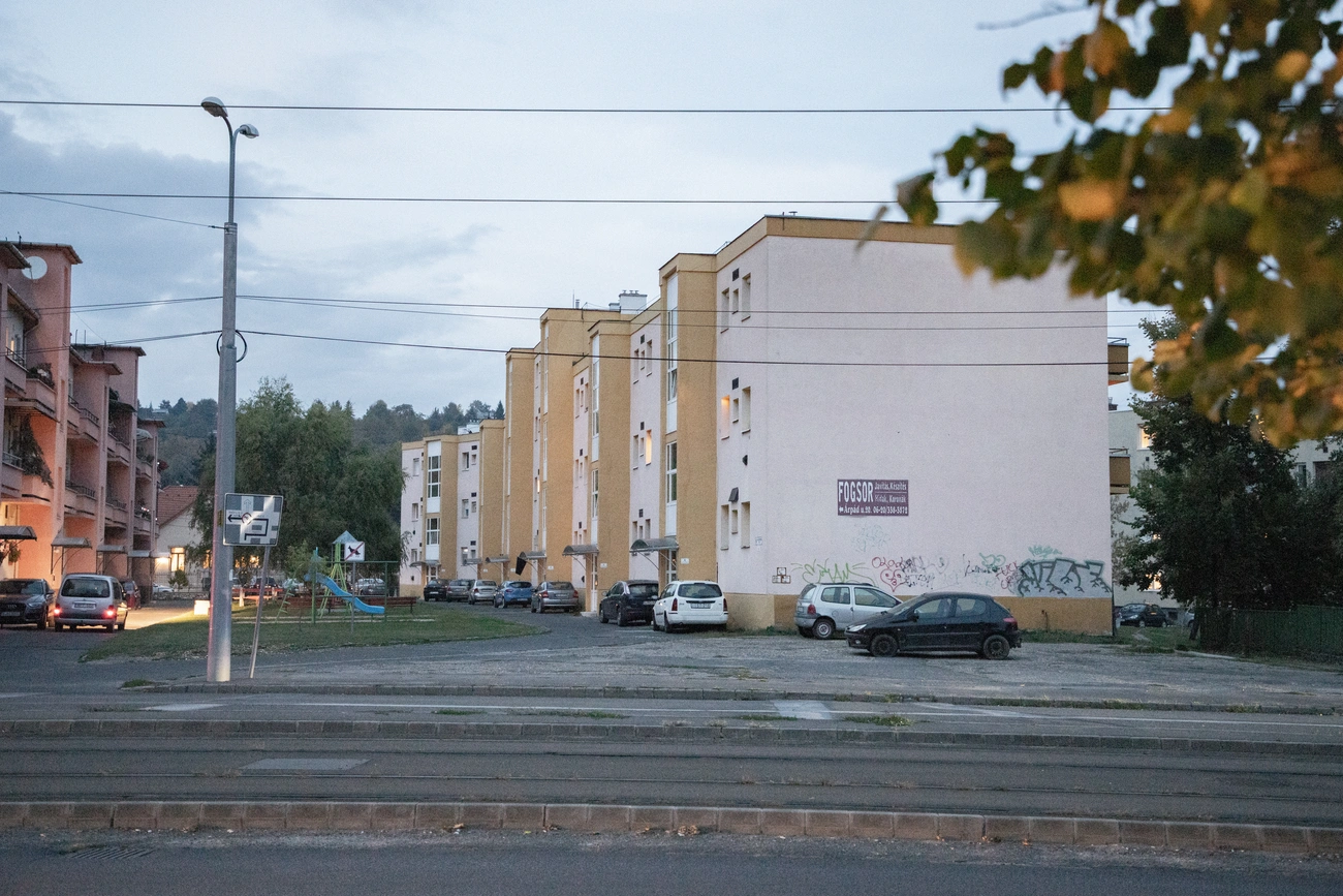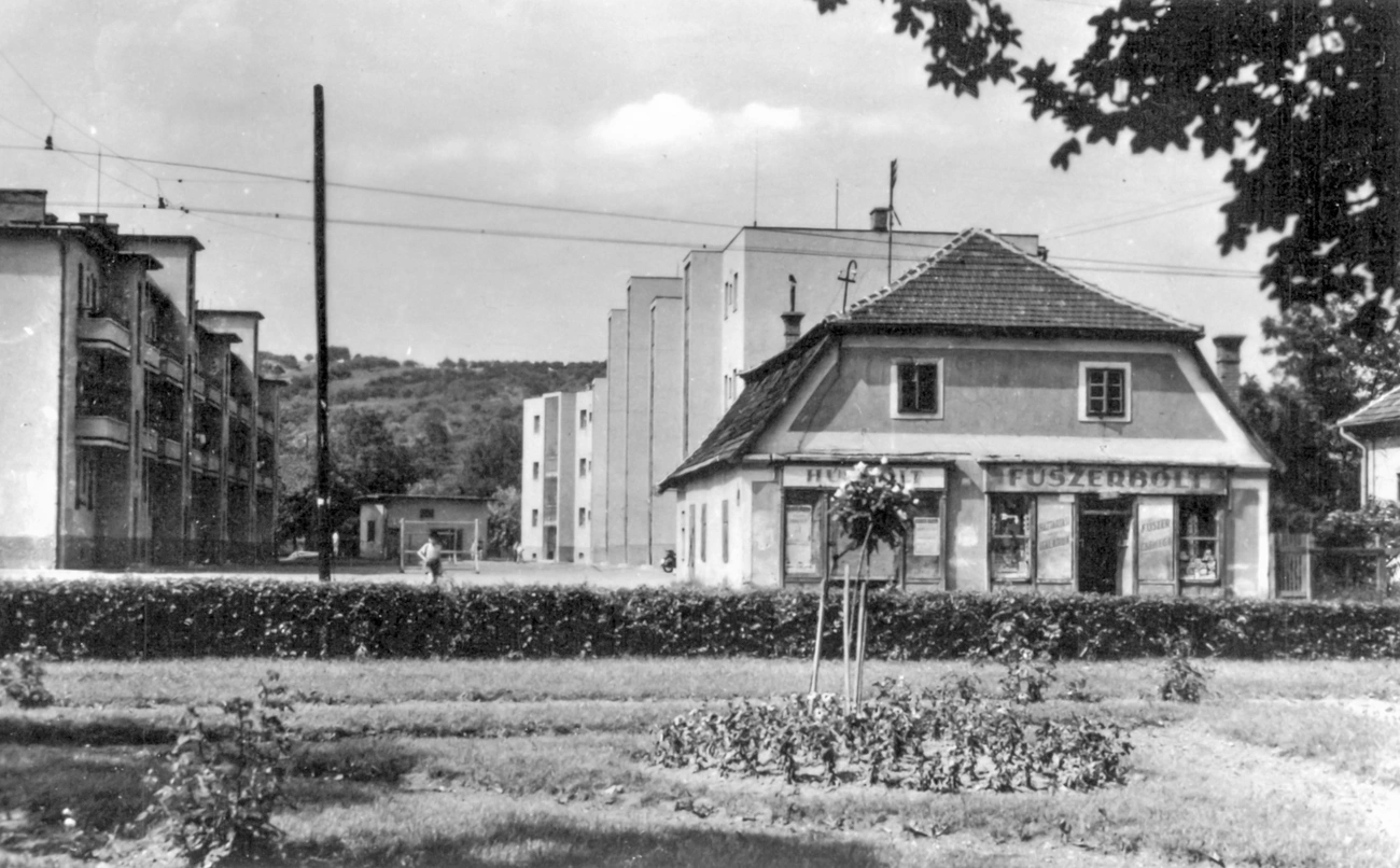 A régi és az új felvételen is a Táncsics tér egy részlete, az ottani bérházak láthatók.