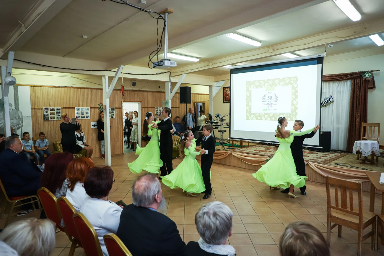 Az ünnepi műsorban fotósorozattal idézték fel az elmúlt fél évszázadot, de felléptek a Ködmön Formációs Táncegyüttes fiatal növendékei és tangóharmonikával kísérve a Boldosasszony Papucsa Nótakör szépkorúi is.