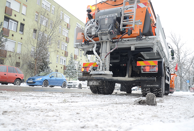 A változékony időjárás miatt a Miskolci Városgazda Nonprofit Kft. három szórógépe síktalanította hétfő délután az Avas városrész és a Feszty Árpád utca buszútvonalait a zavartalan közlekedés érdekében.
