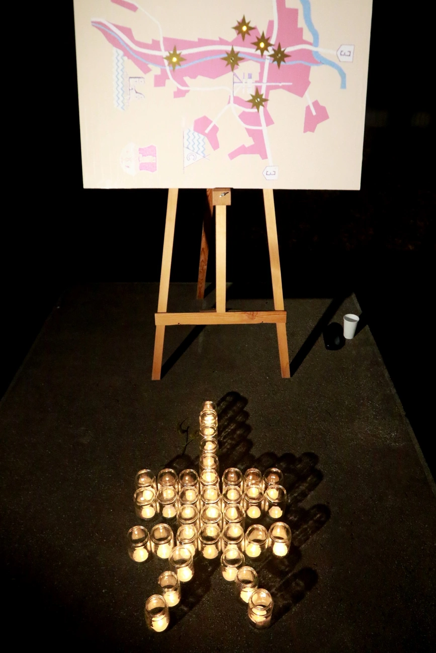 Az Avasi kilátót megformáló mécsesek és a részvételi pontokat ábrázoló térkép