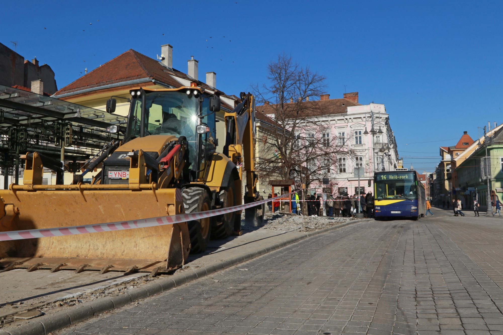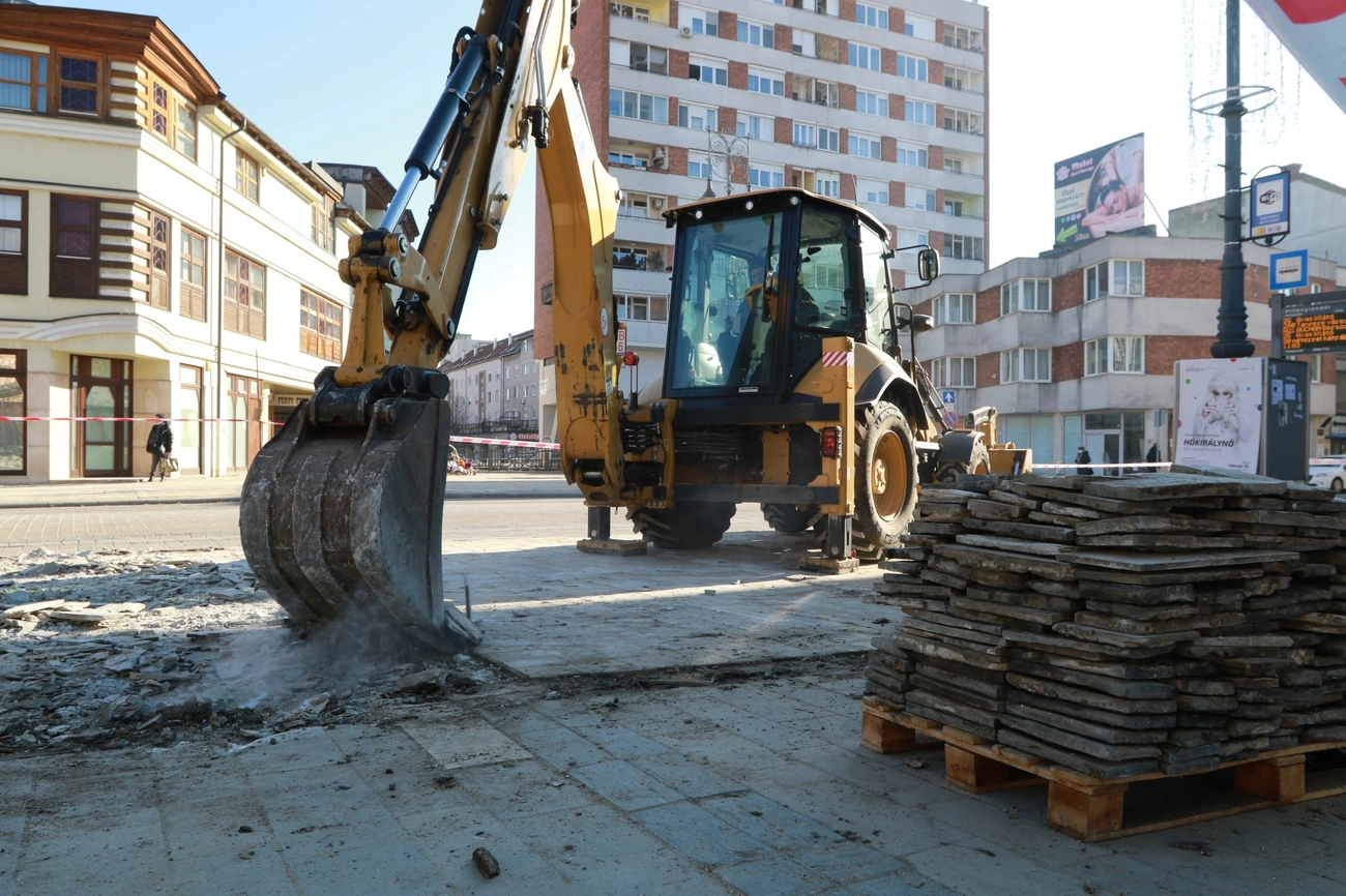 Megkezdődött hétfőn a Villanyrendőrnél található buszmegálló járdafelületének kijavítása. Délelőtt már egy munkagép szedte fel a meglazult, öreg burkolatot.