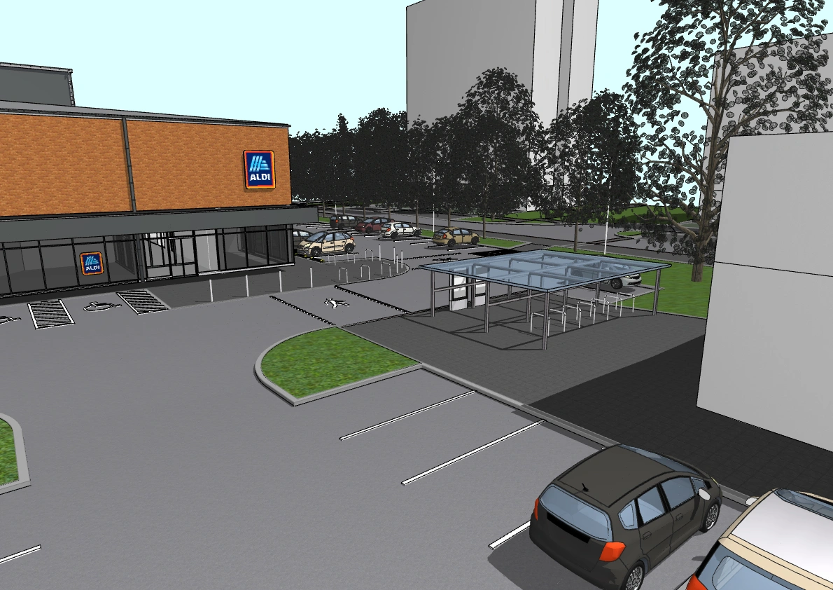 Az áruház előtti tér (a villamosvonal felé) teljesen megújul: növényeket ültetnek ki, miközben minden fa megmarad a területen. Közel kilencven új parkolóhelyet is kialakítanak az áruház előtt és mellett, a már meglévő parkolót pedig fasorral választják majd el. A beruházó azt is vállalta, hogy a már meglévő közterületi parkolót felújítja, újraaszfaltozza. És a biciklivel érkezőknek is kedveznek: ők fedett kerékpártárolót kapnak. De teljesen megújul a környék közvilágítása is. A villamostól érkező gyalogosoknak pedig felfestenek egy zebrát.