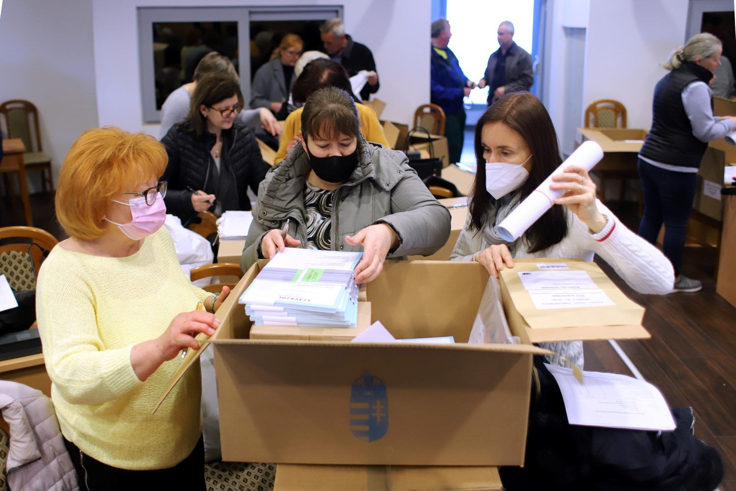 Ignácz Dávid jegyző, a Helyi Választási Iroda vezetője elmondta, jegyzőkönyv rögzíti az átadás-átvétel folyamatát is. Miután ez megtörtént, a dobozokat elzárják és majd vasárnap hajnalban szállítják ki őket a szavazókörök helyiségeibe, hogy reggel 6 órától zavartalanul elkezdődhessen a voksolás.