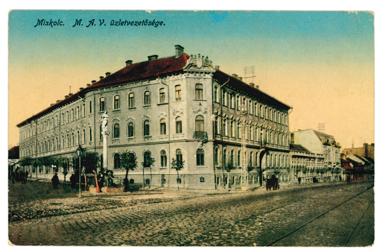 Az épület helyén a tapolcai apátság serfőző műhelye és a Bárányka nevű fogadó állt. A helyükre 1892-ben építették fel a görögkatolikus püspökség neobarokk székházát Blau Gyula (1855–1917) miskolci építész tervei alapján. A MÁV Igazgatóság csak később került ide. Miskolc szerette volna visszakapni a vasúti regionális üzletvezetőséget, amit 1886-ban elvesztett, és végül Baross Gábor közlekedési miniszter az ugyanezért küzdő másik két várossal (Kassa, Debrecen) szemben Miskolcot választotta.