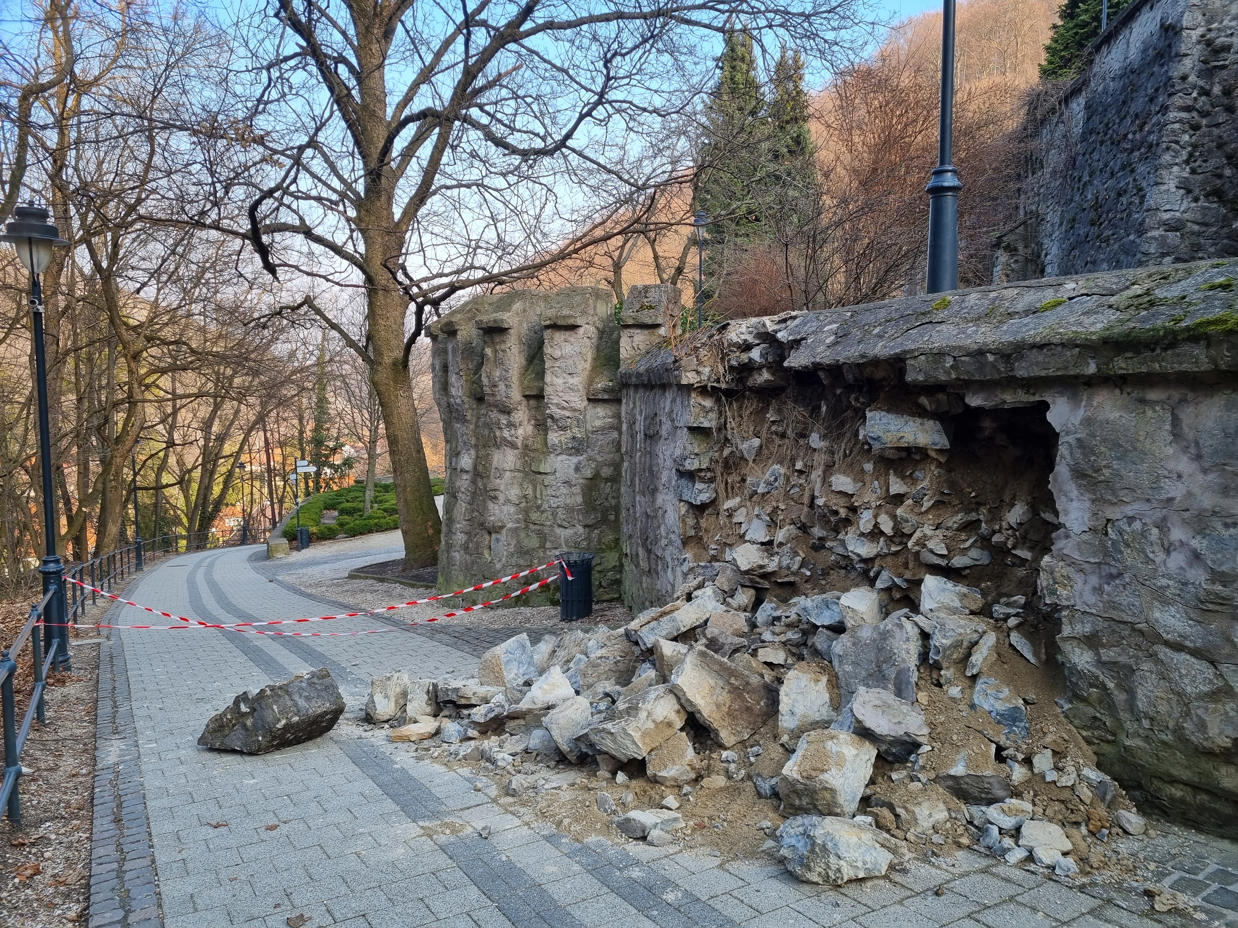 Még március közepén szakadt le egy hatalmas támfalszakasz a függőkert fősétányára. Személyi sérülés ugyan nem történt, az anyagi kár viszont már akkor is tetemesnek nézett ki. A közvetlen élet- és balesetveszély elhárításáról azonnal intézkedett a katasztrófavédelem. Szalagok és kordonok őrzik azóta is a helyszínt.