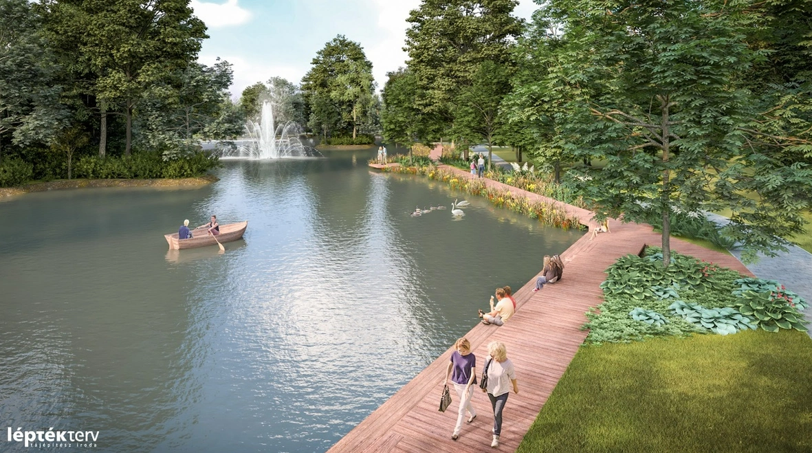 Mindemellett a parkban elkészült a kivitelező a közművezetékek fektetésével, hamarosan kezdődik a munka látványos része, az építkezés. A Csónakázó tó partfalának déli oldala elkészült, a napozóteraszok alapozásánál járnak, északi oldalon viszont csak az iszaptalanítás után fejezik be a partfal építését.