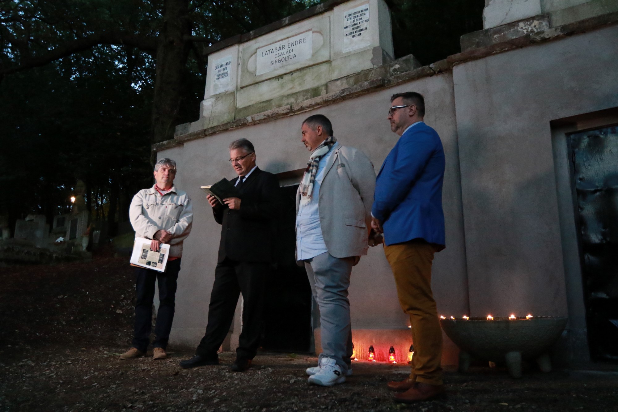 Rövid ünnepség keretében avatták fel szombat este a Latabár családi sírbolt megújult homlokzatát. Az eseményt az avasi hegygazdák, Magyar László és Jacsó Pál a Szent György-hegy Alapítvánnyal közösen szervezték, ami nem véletlen, hiszen a felújítás is a közös munkájuk eredménye.