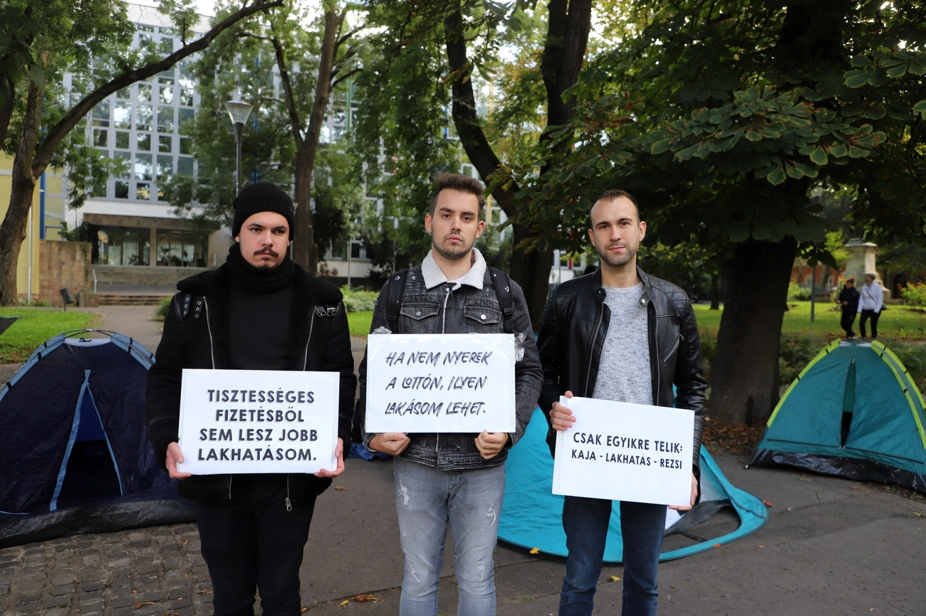 A megyeháza épülete előtt állítottak fel néhány sátrat péntek délután a Societas aktivistái. Az akcióval a fiatalok a lakhatási válság problémáira hívták fel a figyelmet – mondta el lapunknak Bazin Levente, a szervezet elnöke.