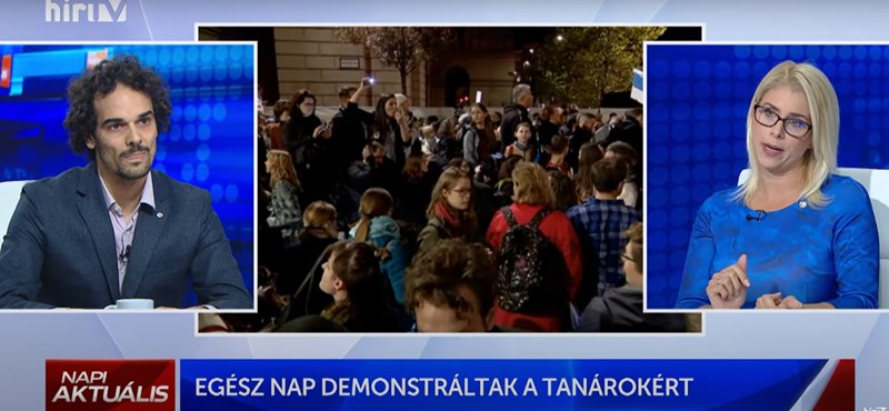 Amikor a műsorvezető arról beszélt, hogy nem lehet egyik pillanatról a másikra megoldani az oktatás problémáit, a tanár jelezte, hogy a kormánynak 12 éve volt, hogy javítson a helyzeten.