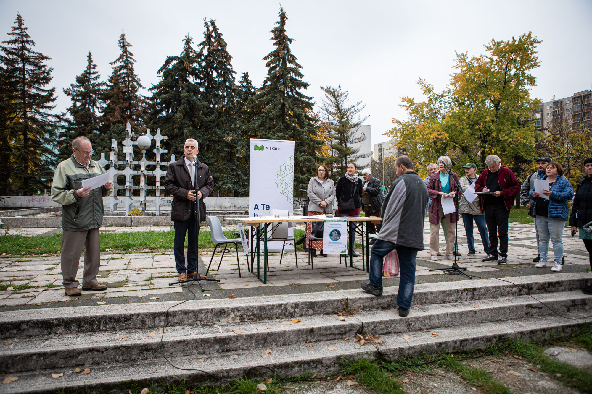 - Az előző városvezetés a társadalmi egyeztetéseket folyamatosan elmulasztotta a döntések előkészítésekor. Néhány esetben ebből komoly problémák és konfliktusok származtak. A jelenlegi városvezetés ezzel a gyakorlattal szakítani akar, ezért minden olyan jelentősebb fejlesztést, amely a város egészét vagy egyes részeit érinti, mint a városközpont, vagy városrészek központjai, szoros társadalmi egyeztetés mellett kíván megvalósítani. Számos ilyen törekvésünk van, gondolok itt a partnerségi egyeztetésekre, a Közösségi Költségvetésre vagy a Részvételi Programra és másokra. Konkrétan a Dísztér esetében – amelynek én vagyok az önkormányzati képviselője -, azt látjuk, hogy rendkívül elhanyagolt állapotban van, így örököltük az előző városvezetéstől. Korábban még működött a szökőkút is, de aztán csak pusztult ez a terület. Ezért elhatároztuk, hogy a teret felújítjuk, sőt, átépítjük. Szeretnénk azt is, hogy új funkciókkal gazdagodjon, egy olyan élő tér legyen, ahol a Miskolciak jól érzik magukat – ismertette a Velünk a Város önkormányzati képviselője.