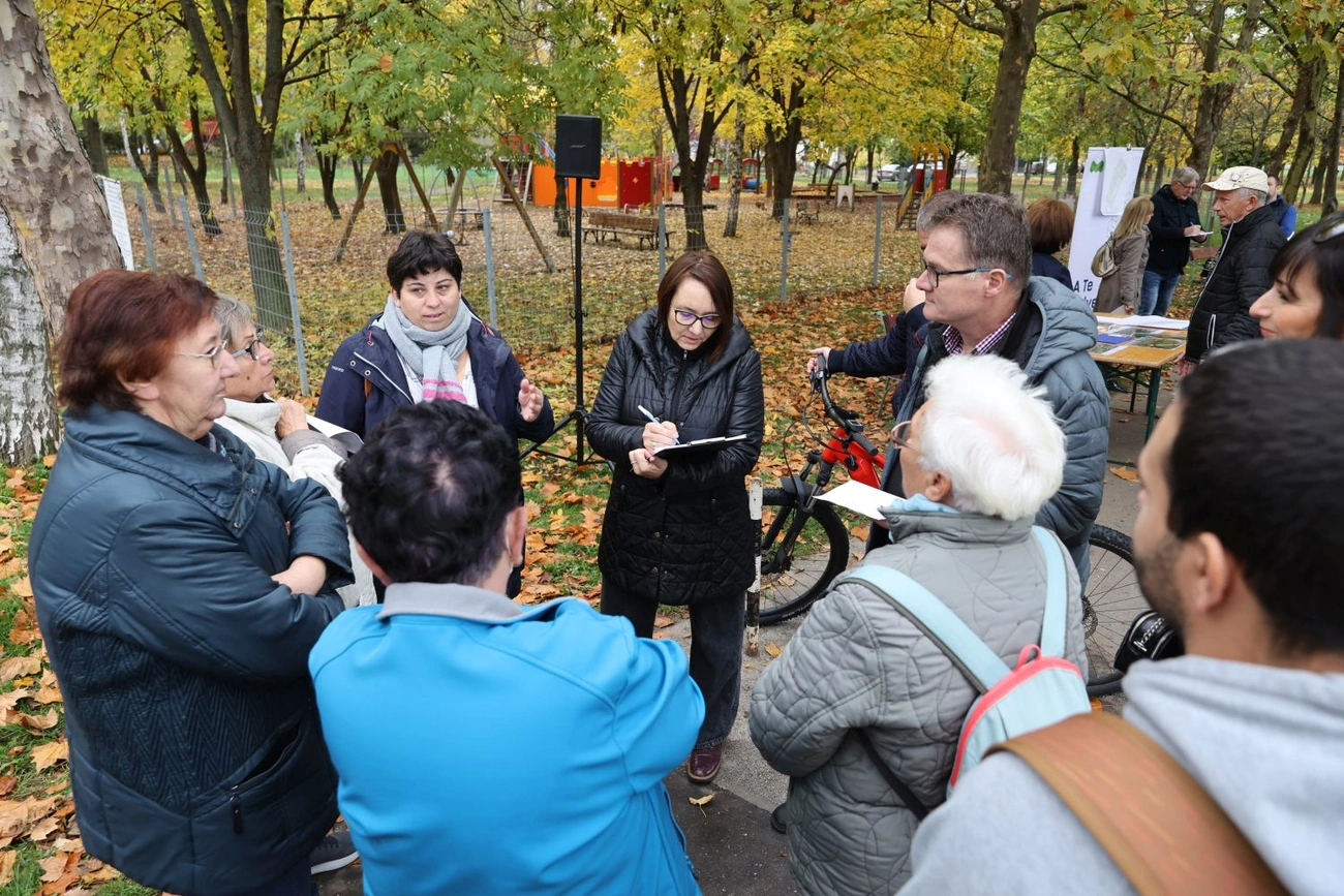 A Honfoglalás parkra áttérve felidézte, régen történt már a legutóbbi fejlesztés a területen, ami a Berekalja központja lehet. „Nézzük meg, hogy mik azok a funkciók, amelyeket még szeretnénk ide, mi az, ami megújításra vár és miket kell újragondolnunk. A mai napon ezekről szeretnénk beszélgetni” – adta meg a felütést a közösségi tervezéshez az alpolgármester.