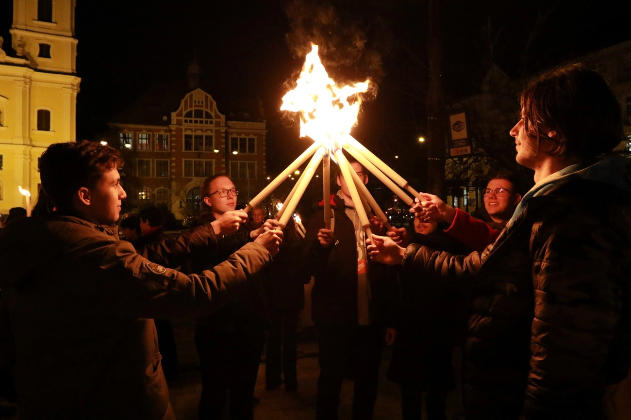 A miskolci esemény fáklyás felvonulással kezdődött, a menet kér irányból, a Földes Ferenc Gimnáziumtól és a Herman Ottó Gimnáziumtól indult Miskolc főterére. A Szent István téren a két csoportosulás egyesült és megformálták a szolidaritás jelképét, a nyitott körben álló felkiáltójelet.