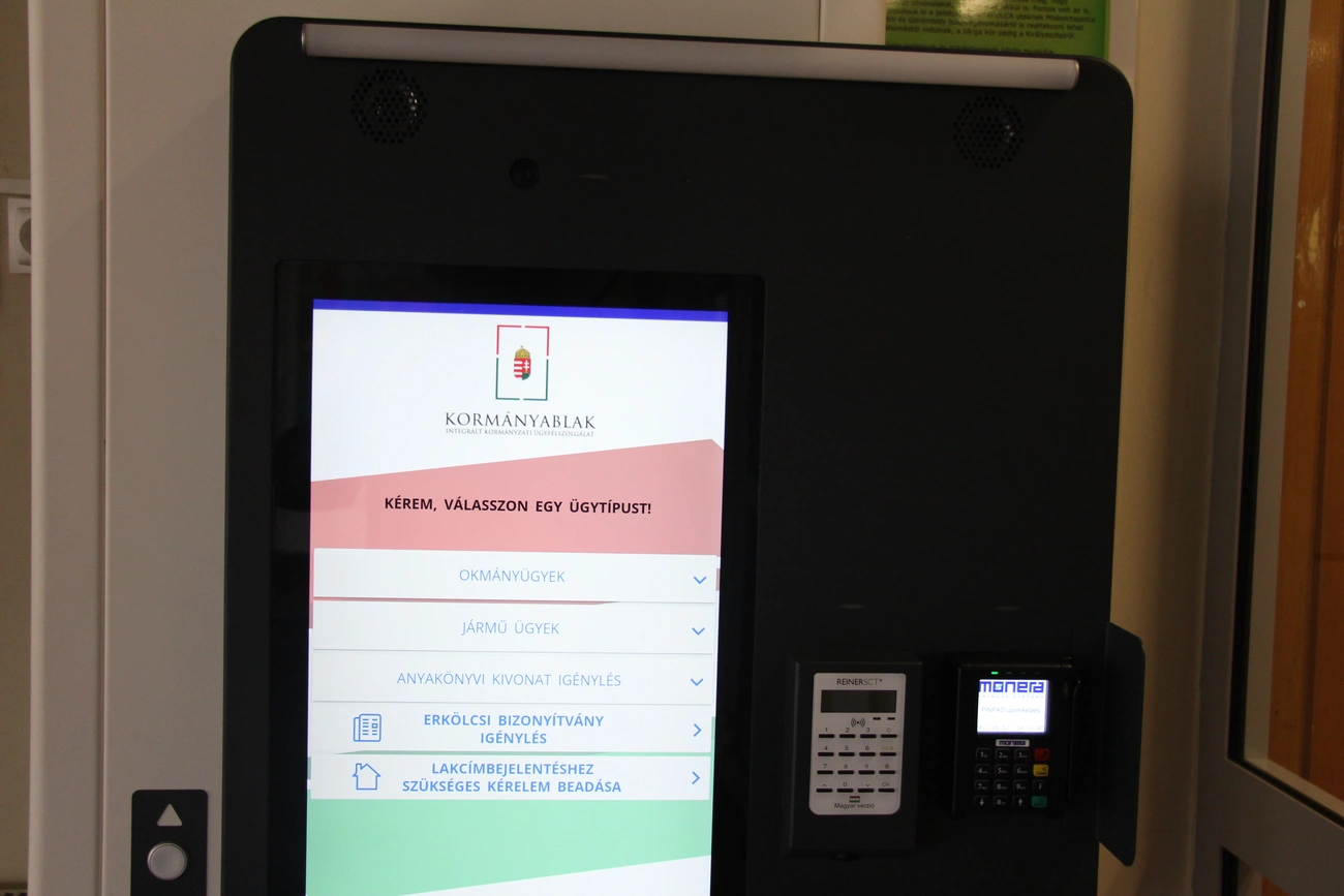 A Mesterséges intelligenciával támogatott ügyintézési pont (KIOSK) telepítése befejeződött, így az intézmény központi épületének szélfogójában egy intelligens gép segítségével könnyedén el lehet intézni az igazgatási ügyeink egy jelentős részét. Nem kell felkeresni a Kormányhivatalt például akkor sem, ha a különböző okmányok érvényességét akarjuk ellenőrizni, vagy születési, házassági anyakönyvi kivonatot, esetleg hatósági erkölcsi bizonyítványt szeretnénk igényelni.