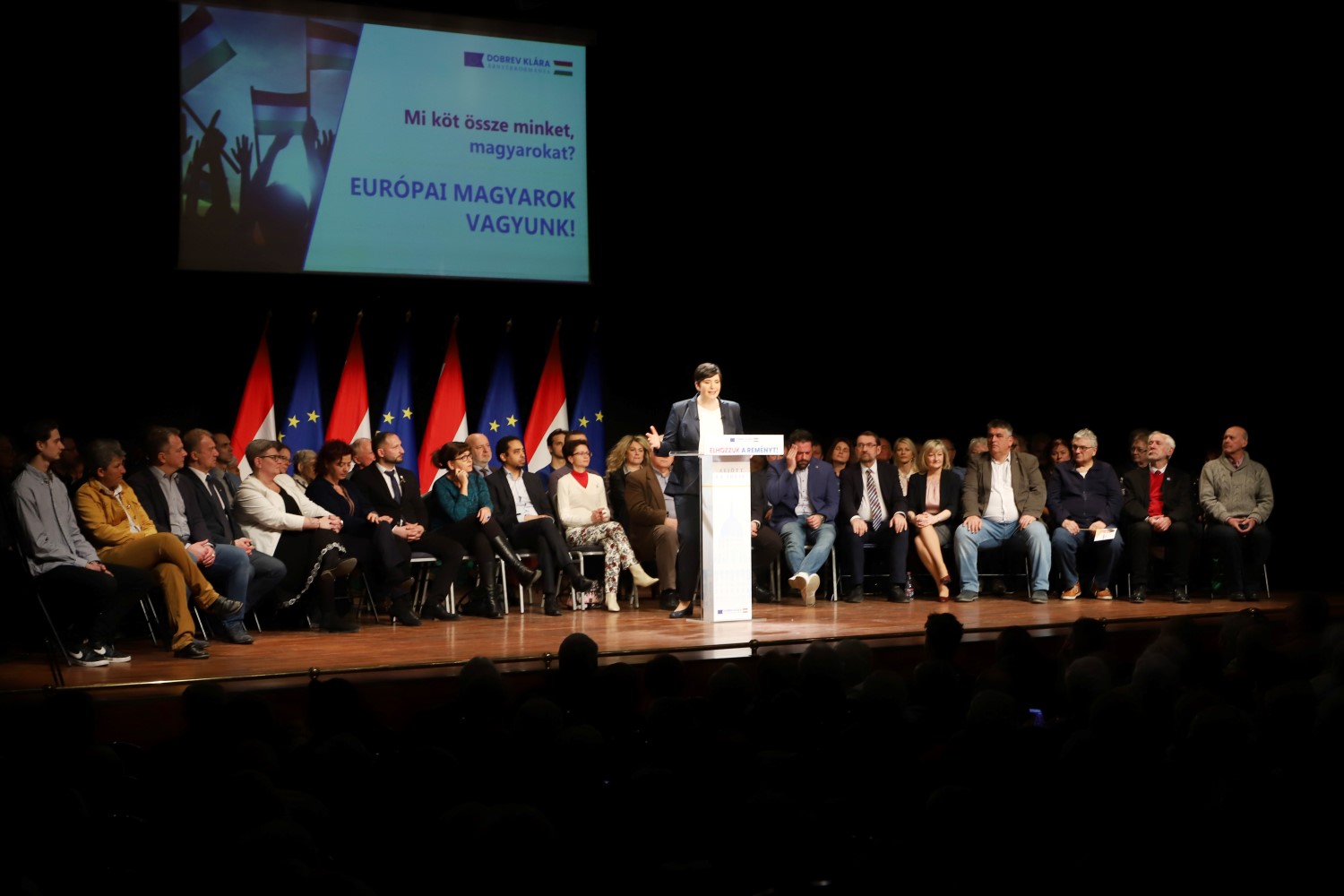 Dobrev Klára vastaps közepette vonult be a Művészetek Háza színpadára. Beszéde első felében azt ecsetelte, hogy mi köti össze a 10 millió magyart. A nyelvünk és a történelmünk mellett - fejtette ki - szükség van arra is, hogy a vágyainkban, az álmainkban is megtaláljuk a közös jövőt. És ez az összekötő kapocs nem szabad, hogy pártállástól, nemtől, vagy éppen vallástól függjön.