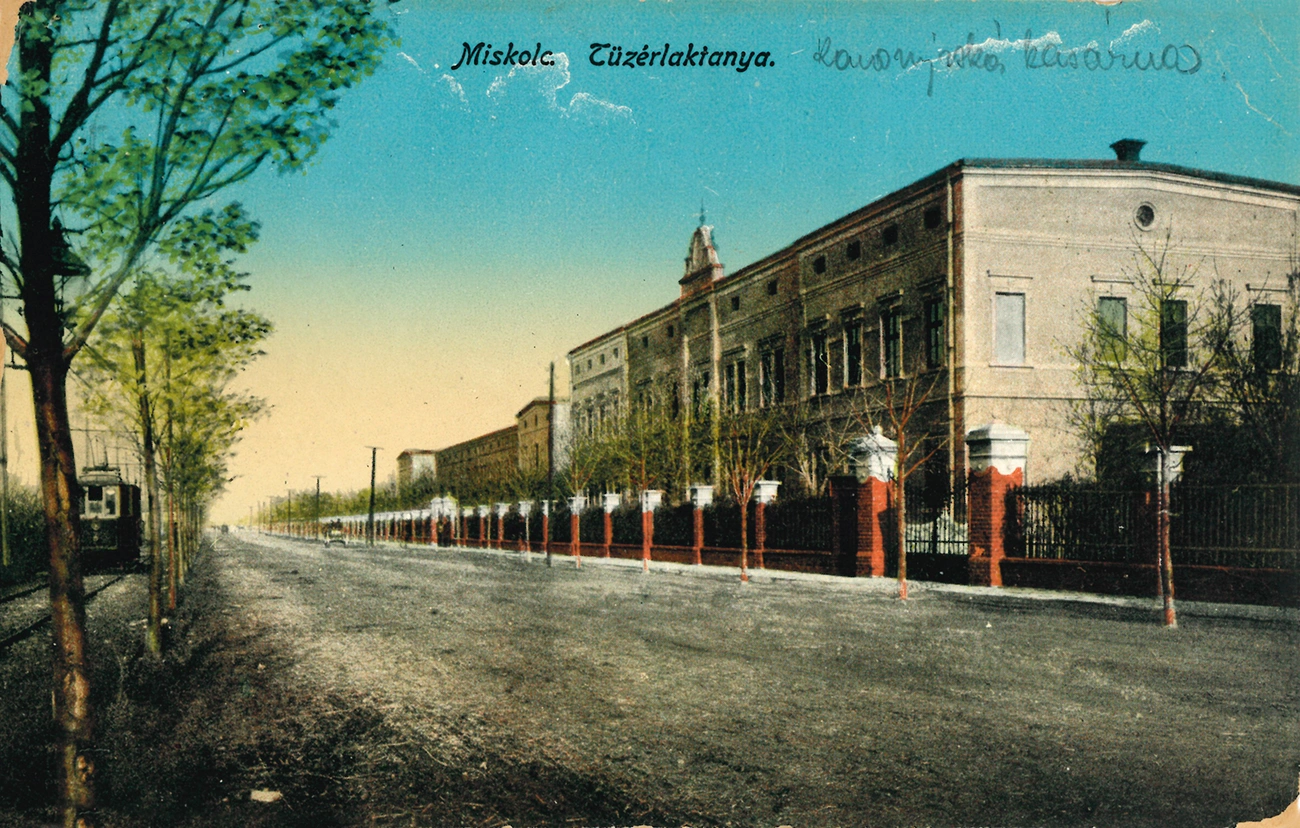 A vasútállomással szemben kialakított főút mentén Ádler Károly tervei alapján épült fel a tüzérségi laktanya. A mai Baross Gábor utcára fő homlokzattal három épülettömböt alakítottak ki. A középső a tisztek, míg a két szélső a legénység szálláshelyéül szolgált. A tiszti lak mögötti, ma már nem létező épületekben börtön, kórház és szakszemélyzeti épületek voltak.