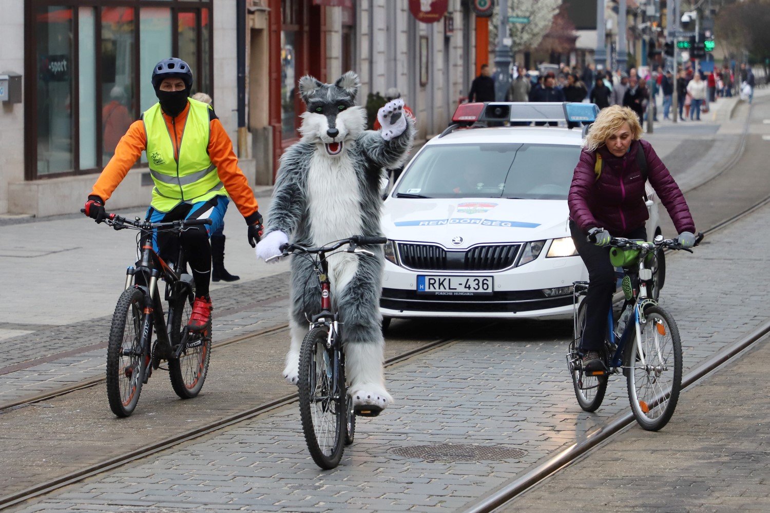A Tudomány és Technika Háza előtti téren összegyűlt motorosok és bringások rendőri felvezetéssel indultak útnak, majd a villamossíneken gurulva dudálással hívták fel magukra és céljaikra a járókelők figyelmét.